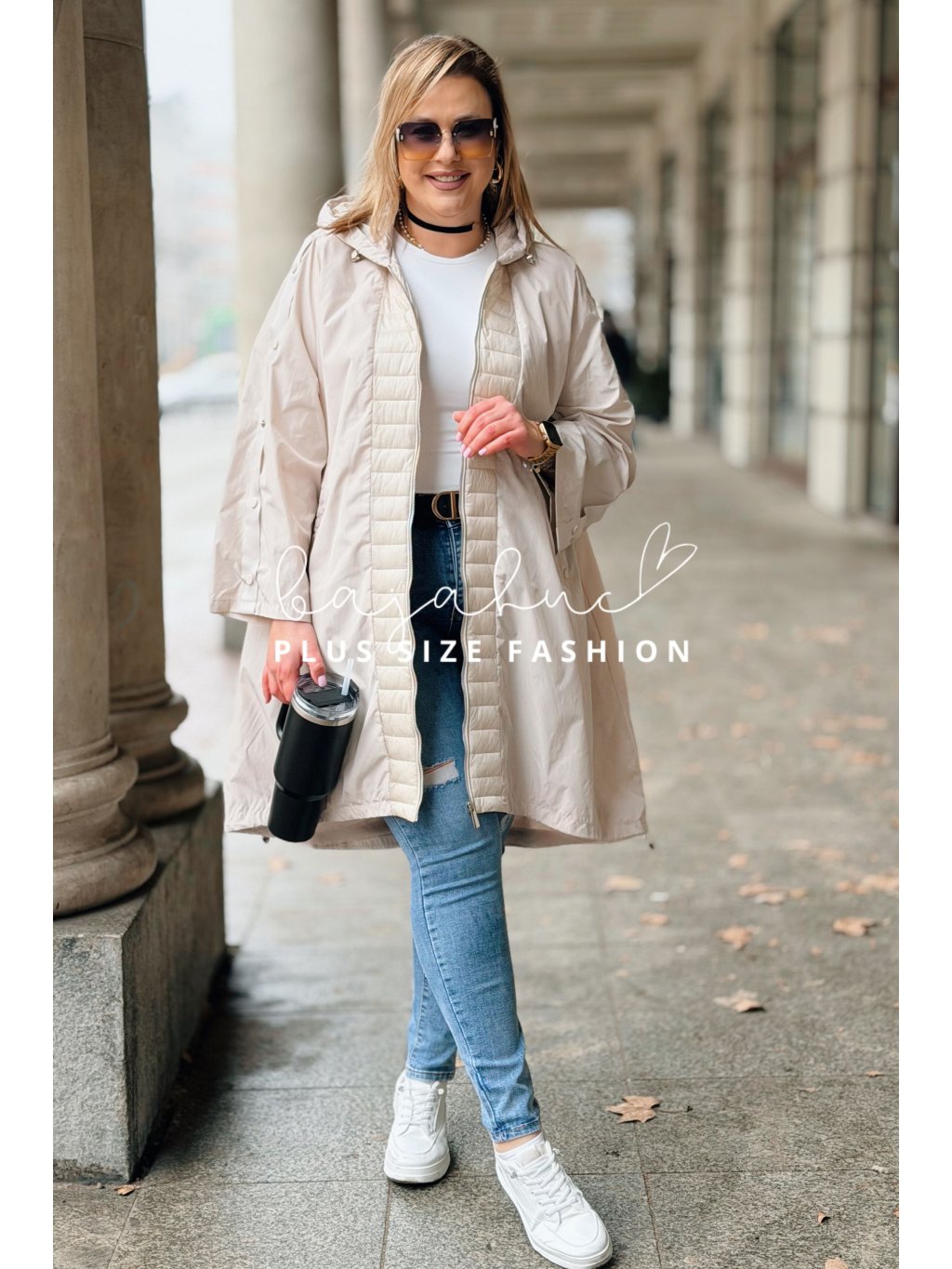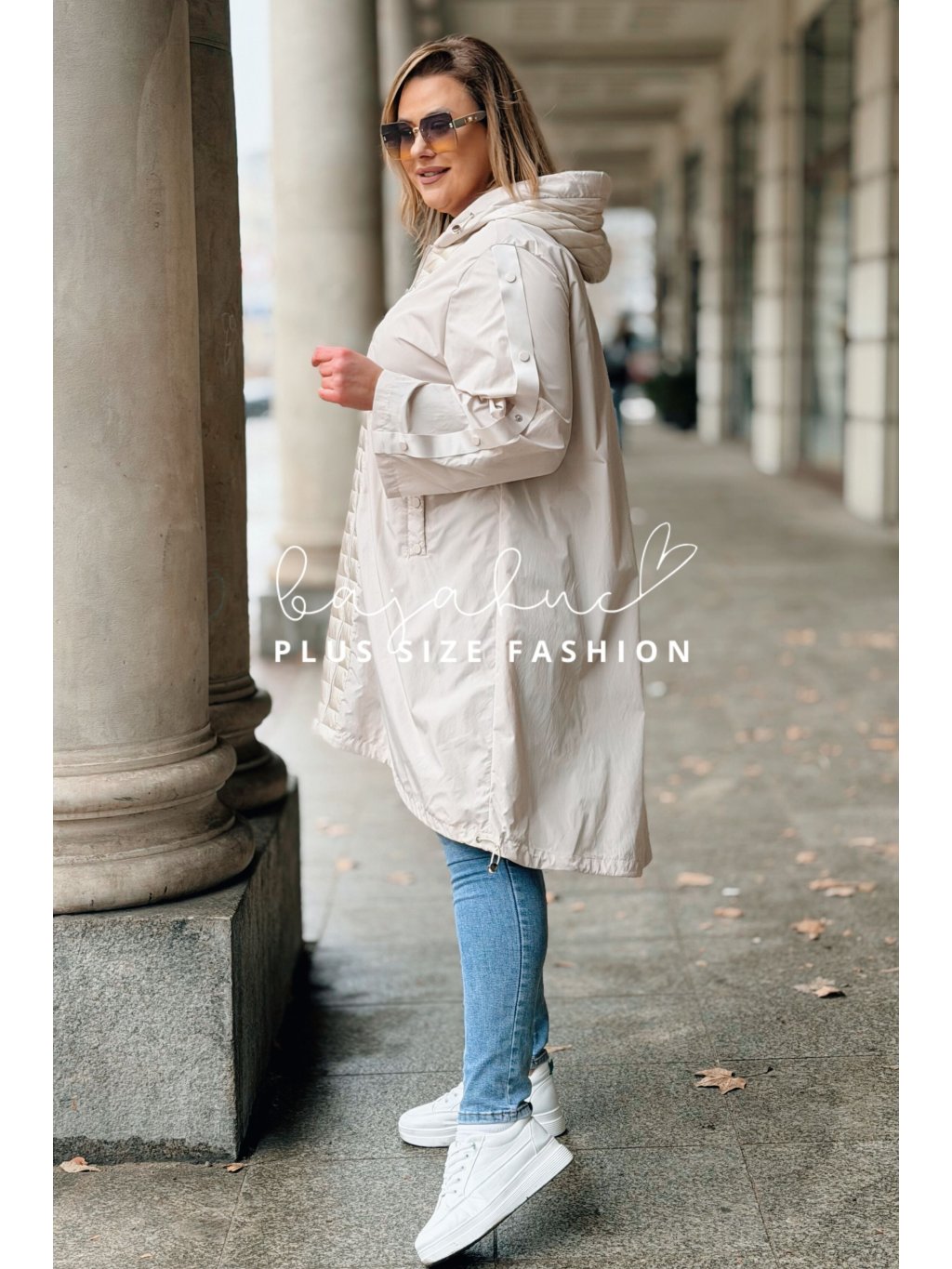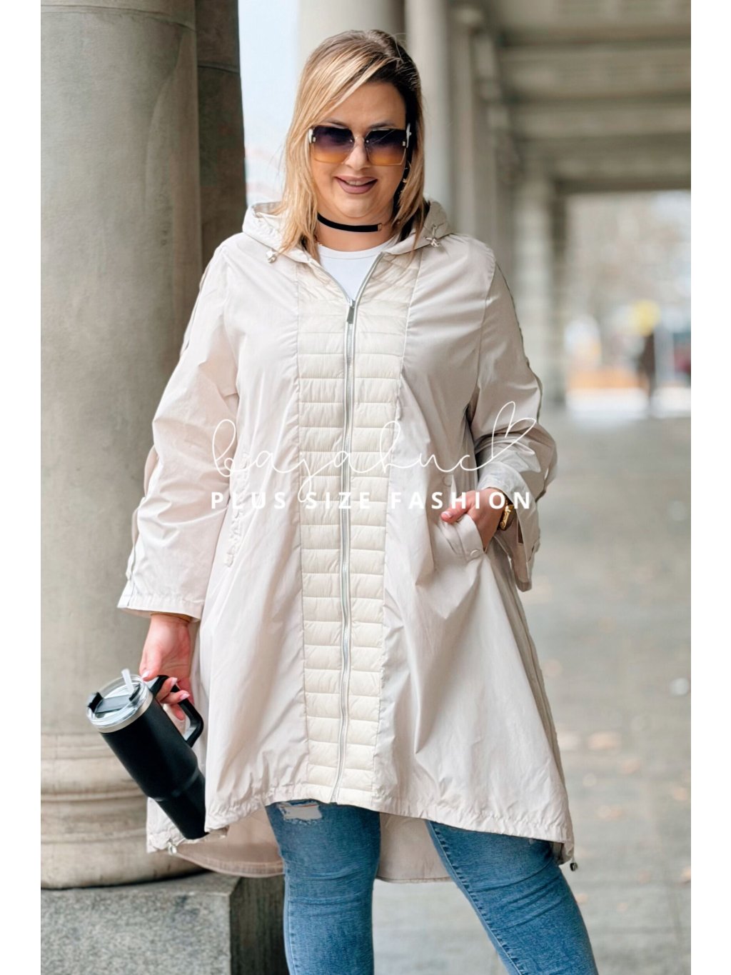 Prechodná parka pre moletky FLORISA, je jedinečný model plus size bundy a svojim výnimočným prevedením na prvý pohľad zaujme. Spája v sebe športový štýl s nádychom modernej elegancie. Plus size parka FLORISA má kapucňu a tiež vrecká, čo oceníte v prechodnom či sychravom počasí. Je asymetrického strihu, vzadu mierne predĺžená. Parka je doplnená o ozdobné pracky na rukávoch, a prešívaný lem okolo zipsu, čo jej dodáva šmrnc a jedinečnosť. Zapína sa na zips. Naspodu bundy je šnúrka pre stiahnutie a prispôsobenie postave. Je to model ideálny do prechodných dní, na každodenné nosenie.