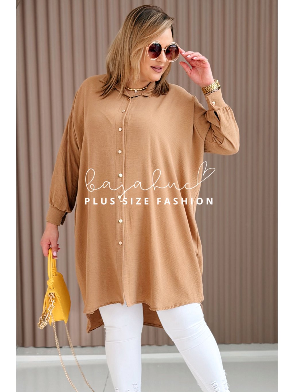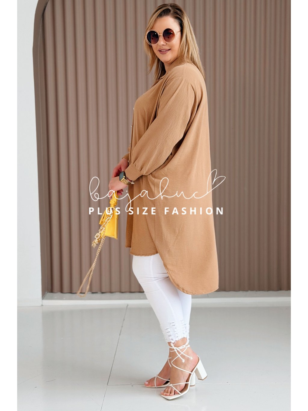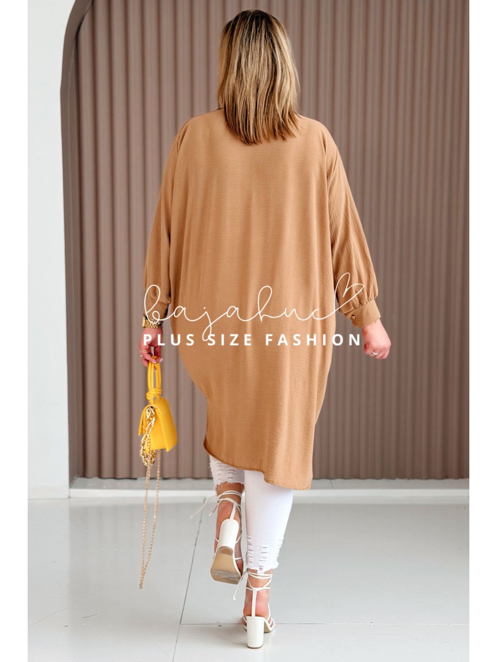 Dámska predĺžená košeľová tunika pre moletky Petana karamelová