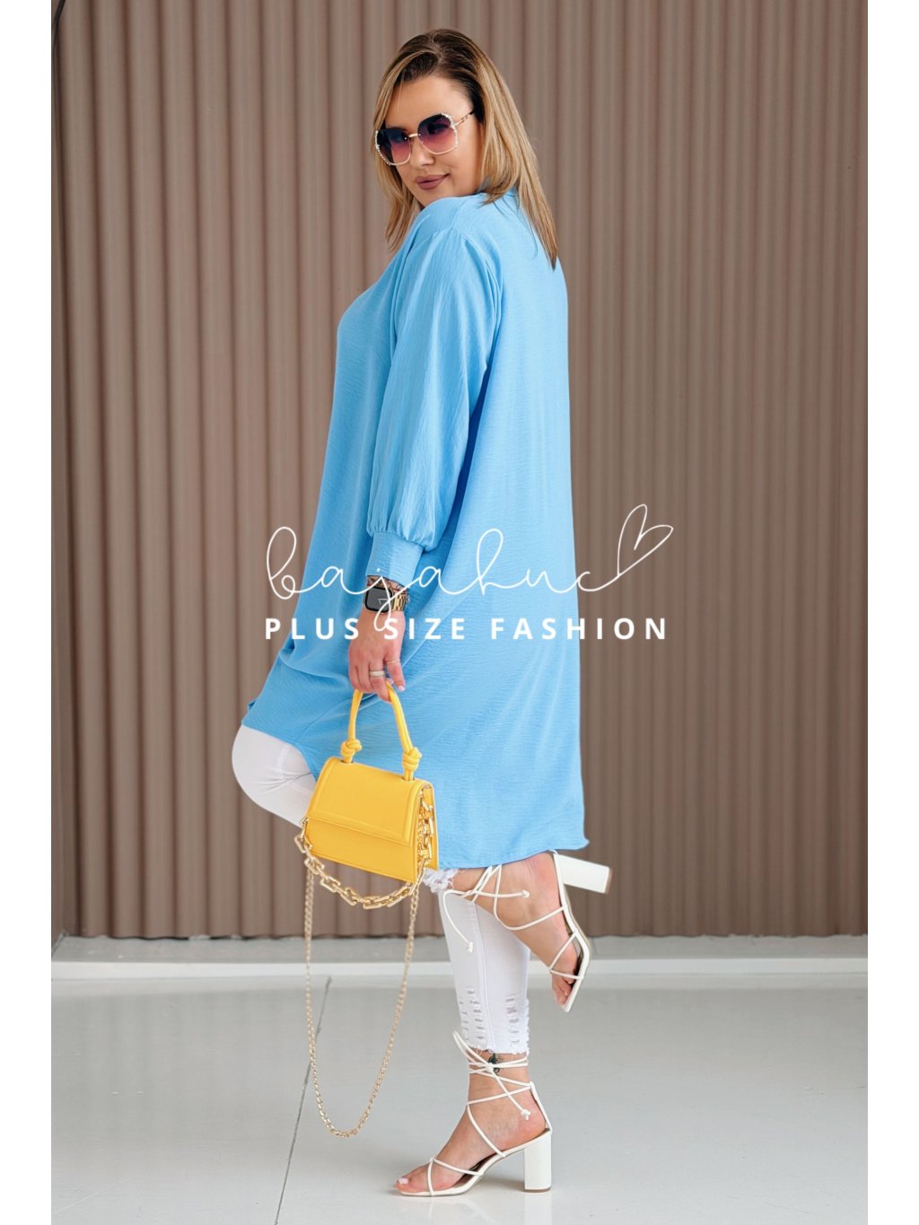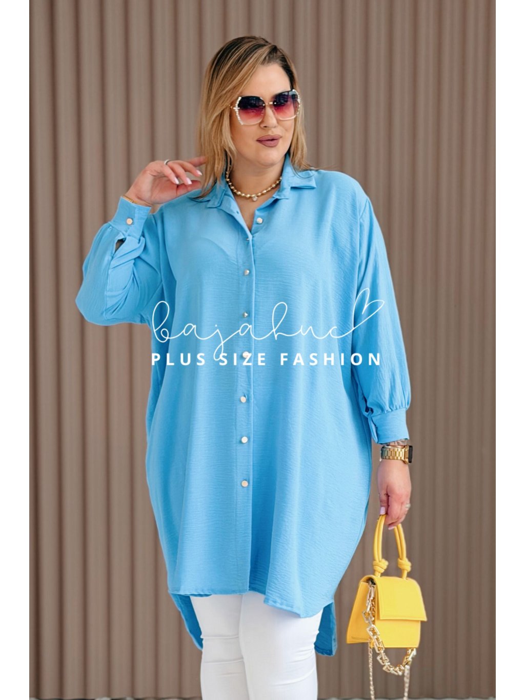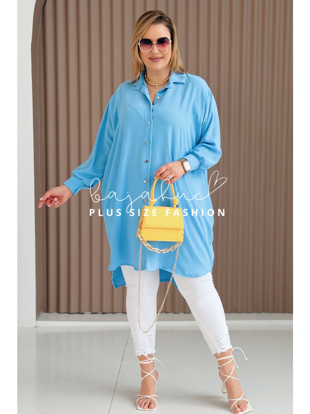 Dámska predĺžená košeľová tunika pre moletky Petana svetlomodrá
