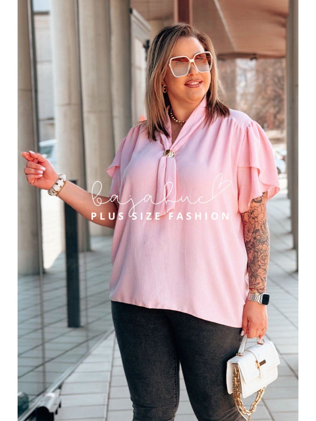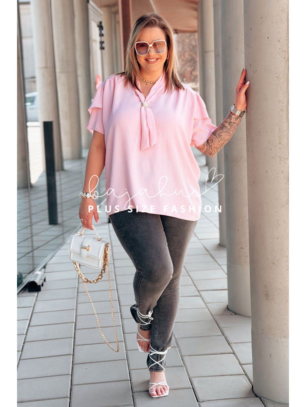 Elegantná plus size blúzka PIANA je jednoduchý no zároveň výnimočný model na mnoho príležitostí. Jej vzdušný strih, doplnený sviežimi volánikovými rukávmi si jednoducho zamilujete. Blúzka je vo výstrihu doplnená o kravatu s ozdobnou brošňou, čo pôsobí zaujímavo a elegantne. Ide o univerzálny a ľahko kombinovateľný model, po ktorom siahnete či už v bežný deň, do práce, na rande alebo na slávnostnejšie príležitosti ako je napríklad včera s rodinou.