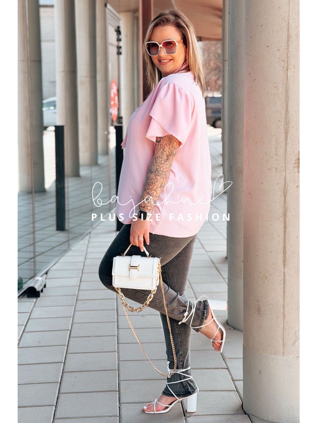 Dámska vzdušná blúzka s krátkymi volánikovými rukávmi Piana ružová