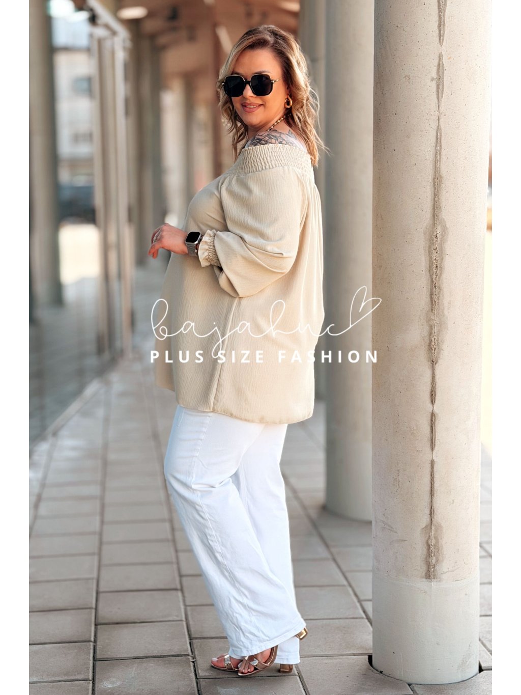 Dámska vzdušná blúzka so španielskym výstrihom pre moletky Amora béžová