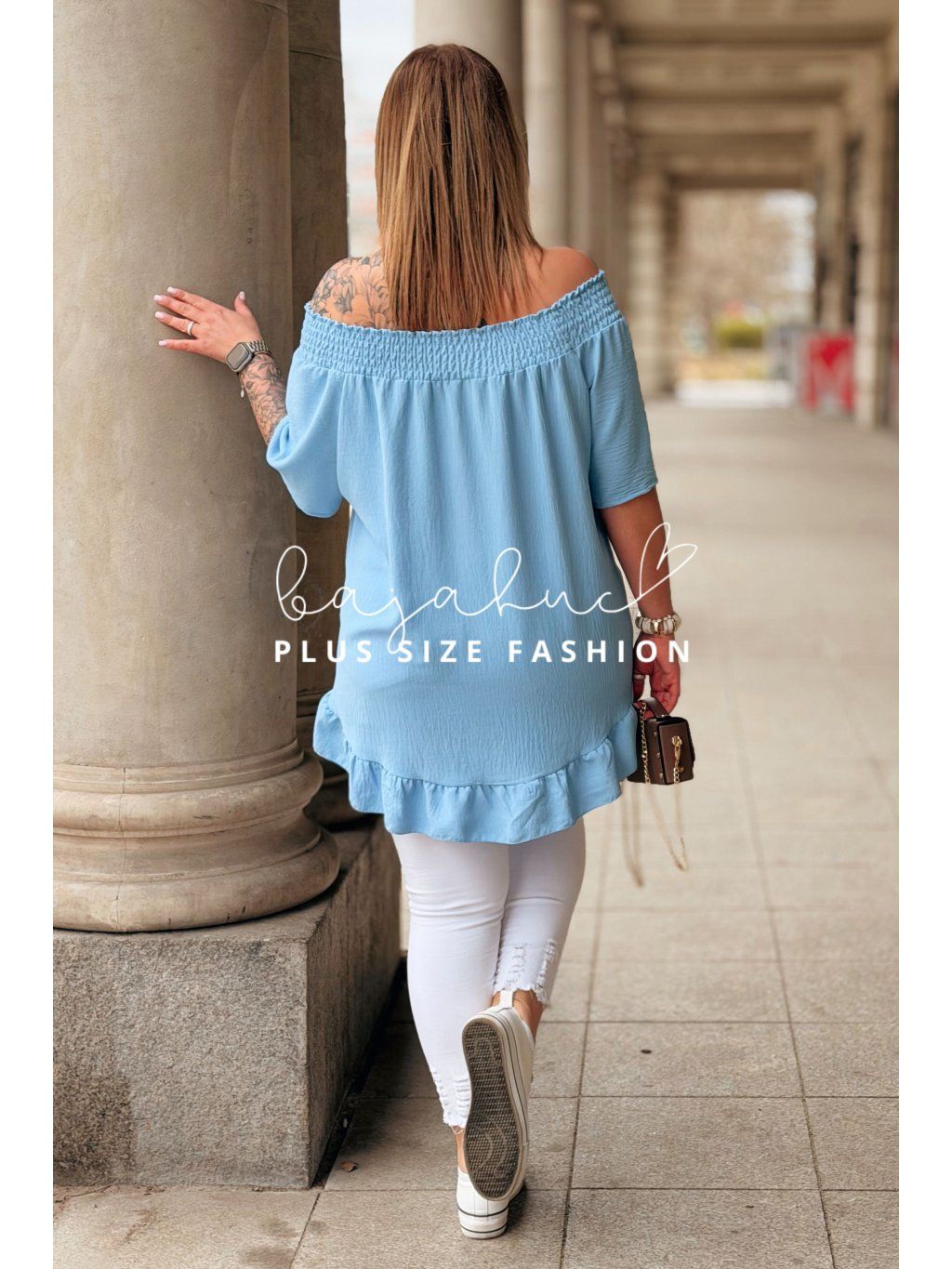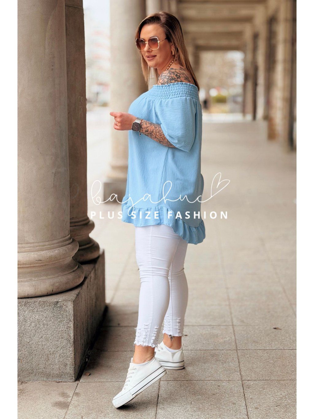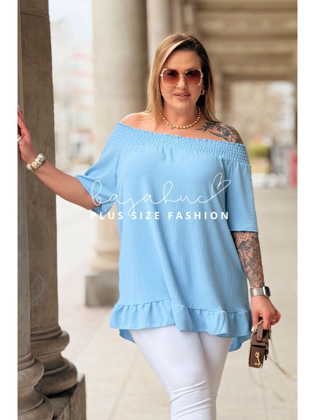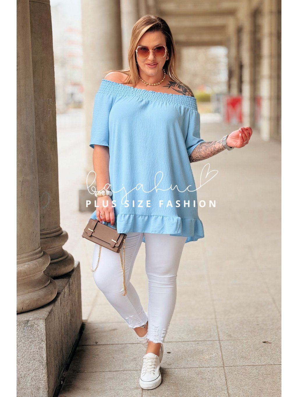 Dámska plus size blúzka GABIA je jednoduchý no zároveň výnimočný model na mnoho príležitostí. Jej vzdušný strih, kvalitný materiál a prevedenie si jednoducho zamilujete. Blúzka má španielsky výstrih s jemnou gumičkou s riasením a krátke voľné rukávy. Naspodu je ukončená romantickým volánikom. Ide o univerzálny a ľahko kombinovateľný model, po ktorom siahnete či už v bežný deň, do práce, na rande alebo na slávnostnejšie príležitosti ako je napríklad včera s rodinou.