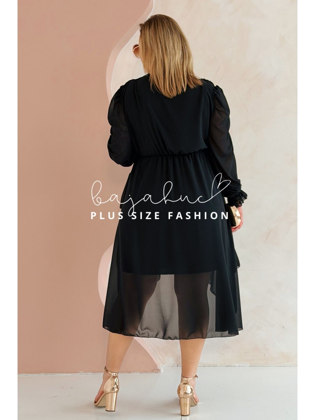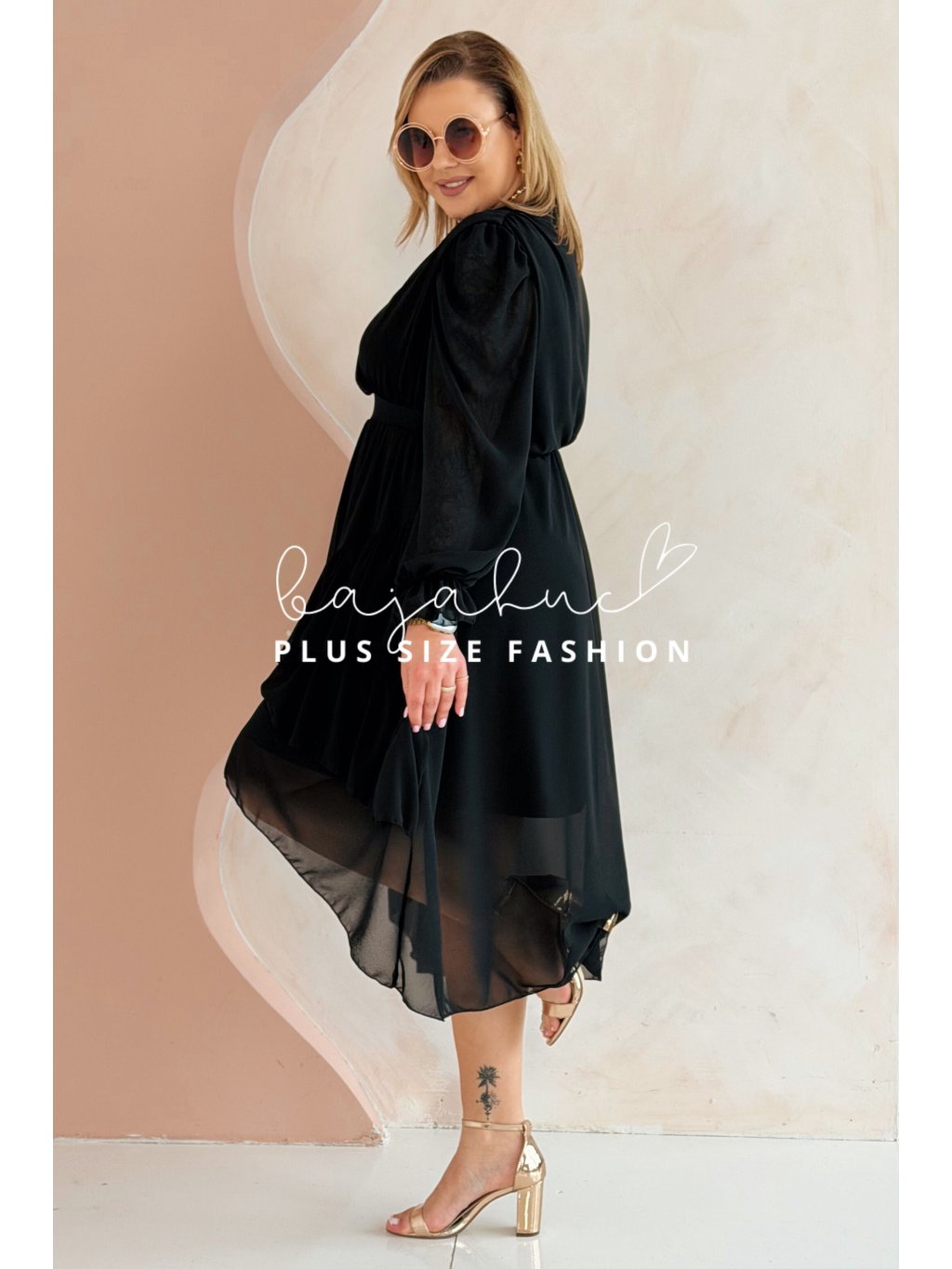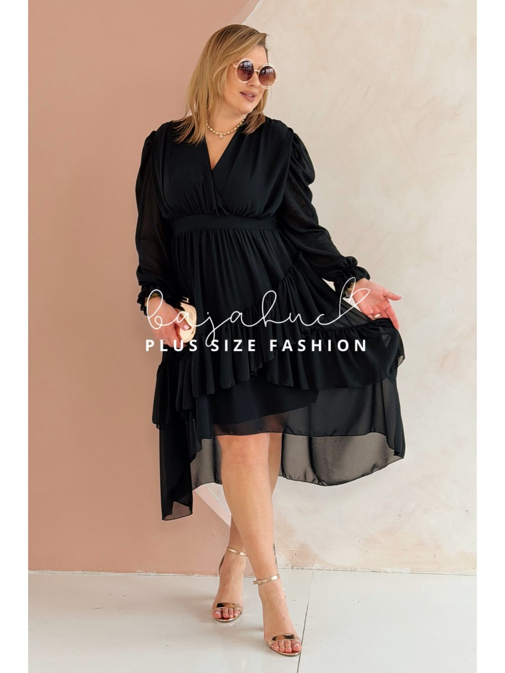 Dámske asymetrické plus size šaty s volánikmi Violete čierne