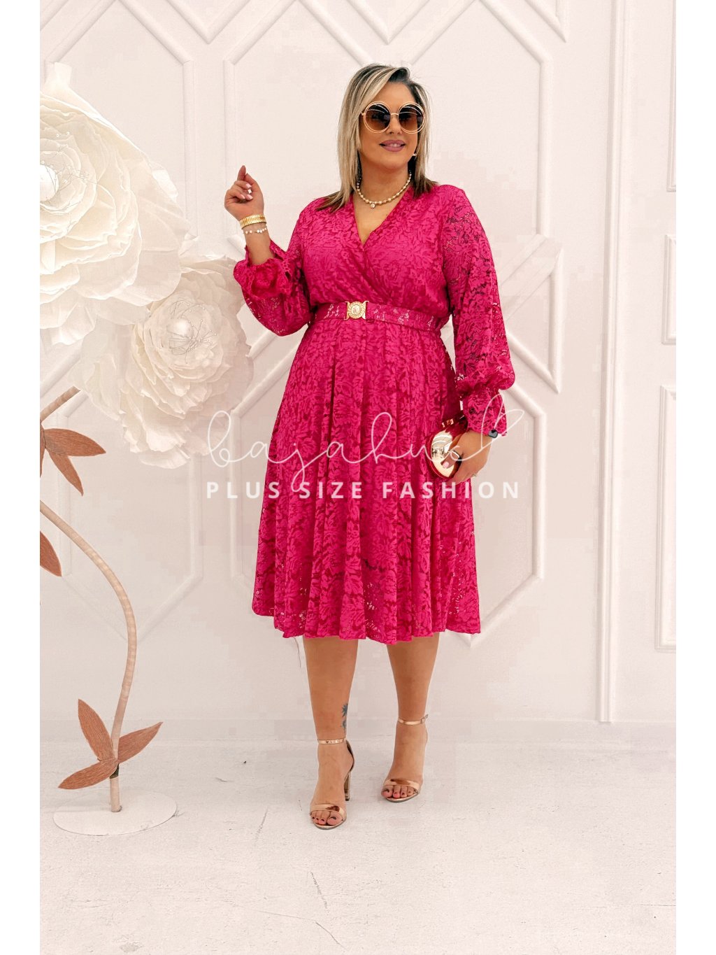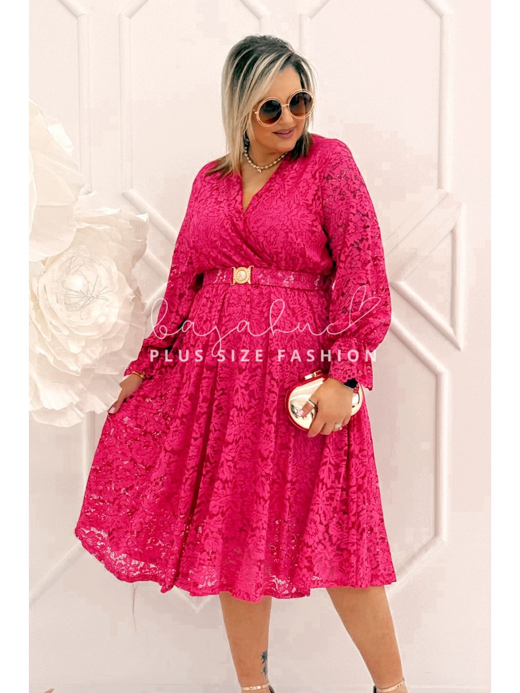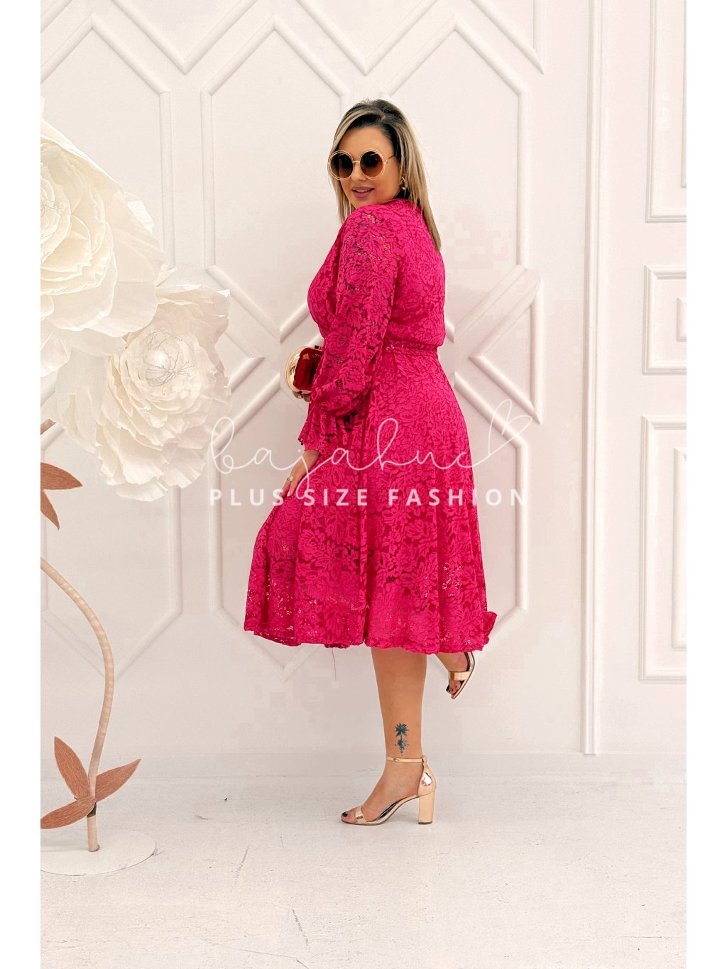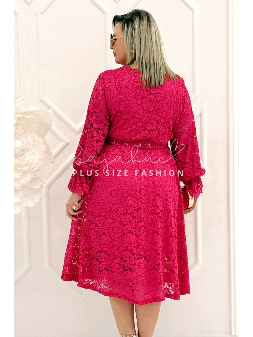 Dámske čipkované midi šaty s opaskom pre moletky Torina fuchsiové