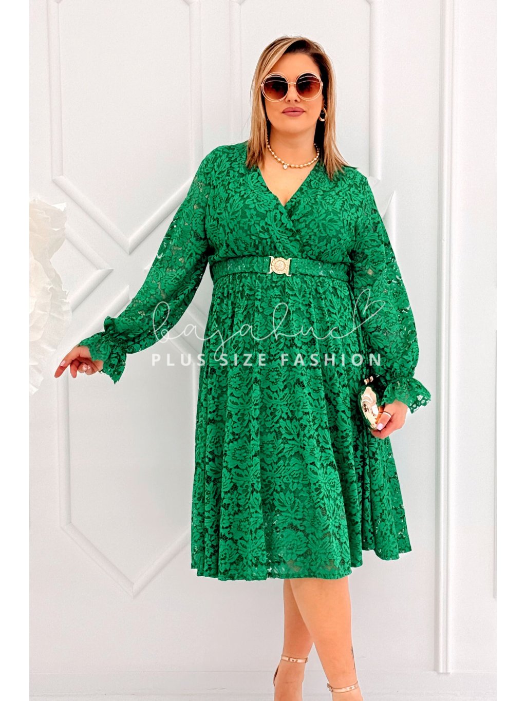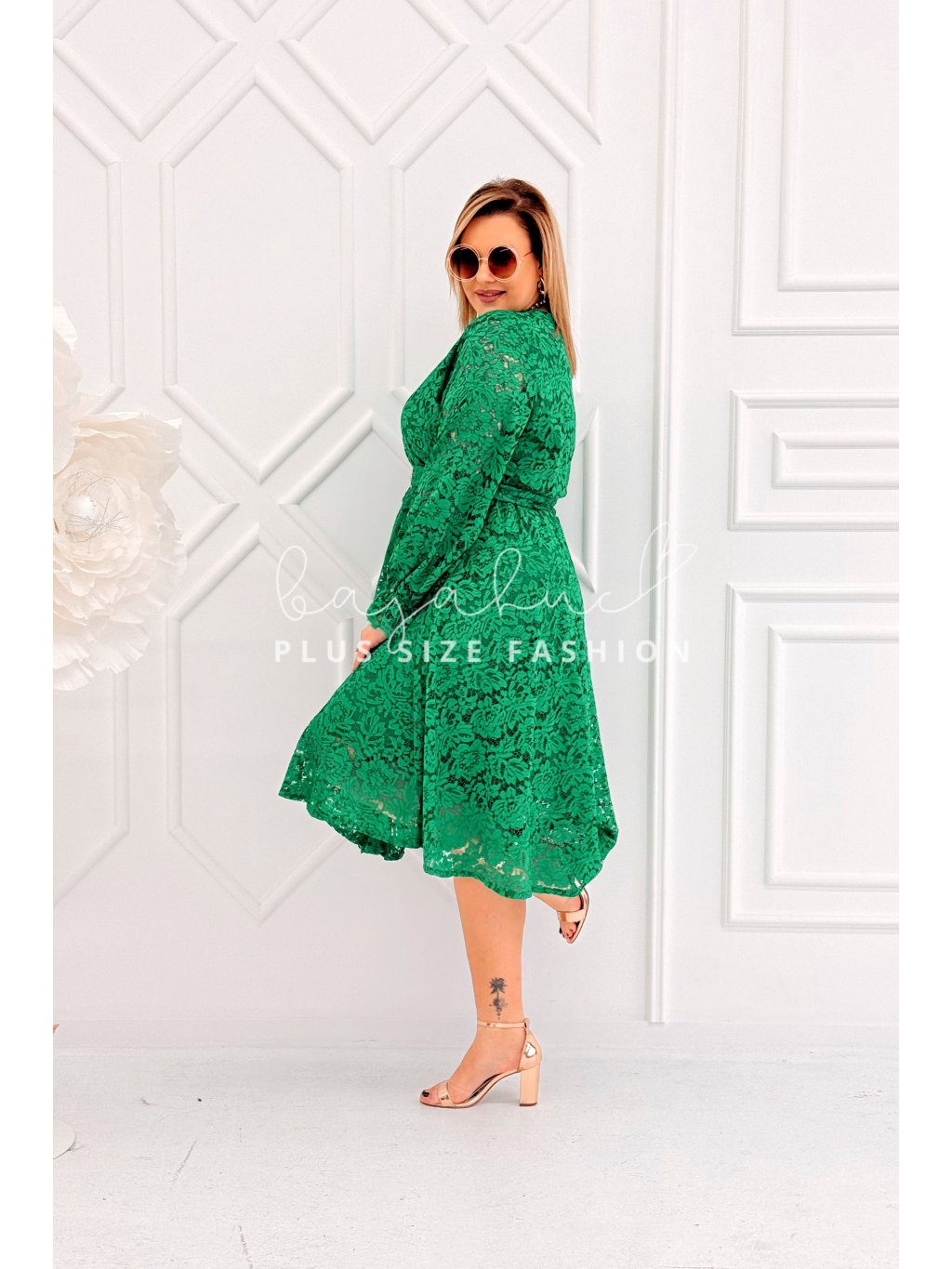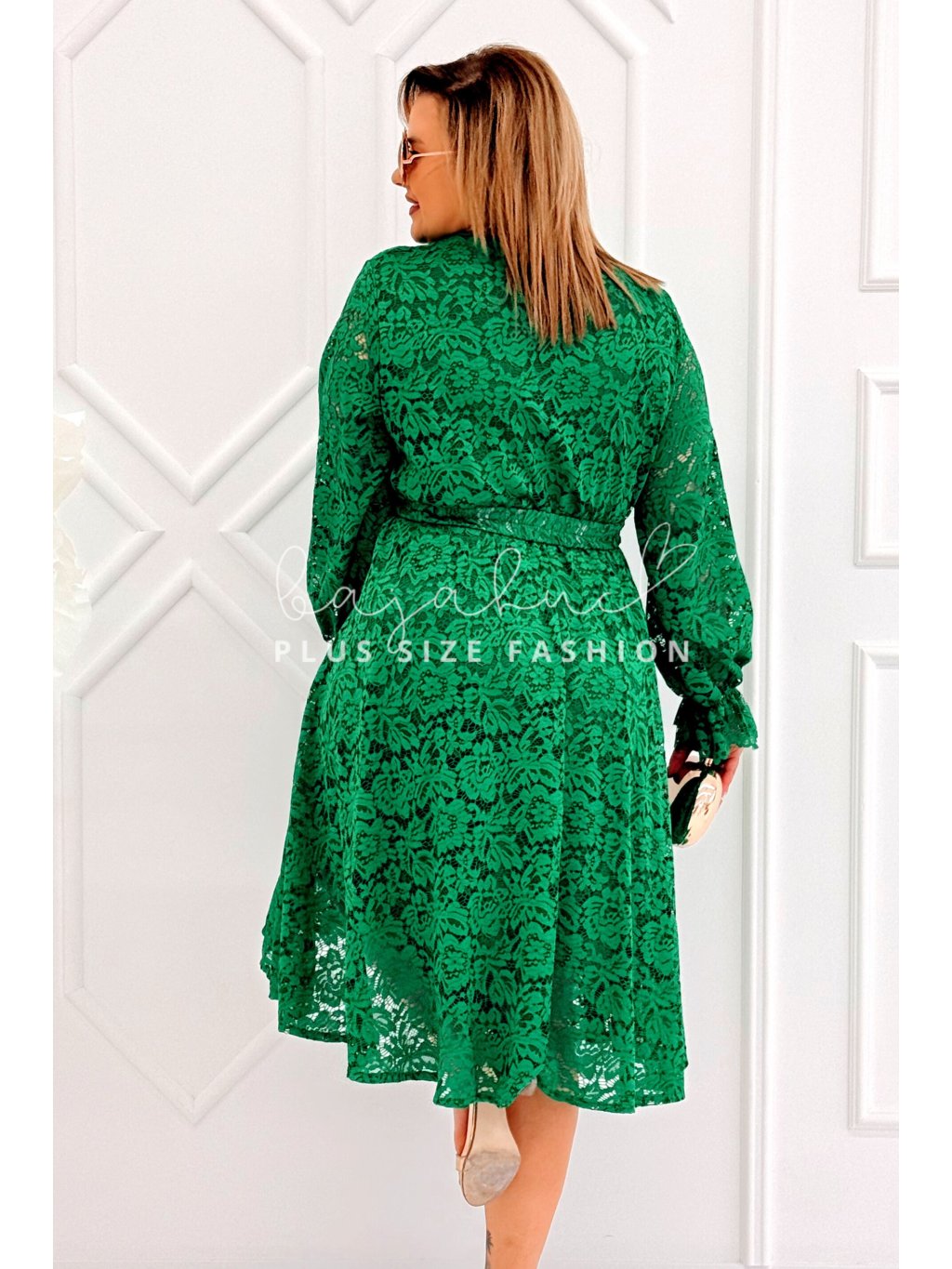 Dámske čipkované midi šaty s opaskom pre moletky Torina zelené