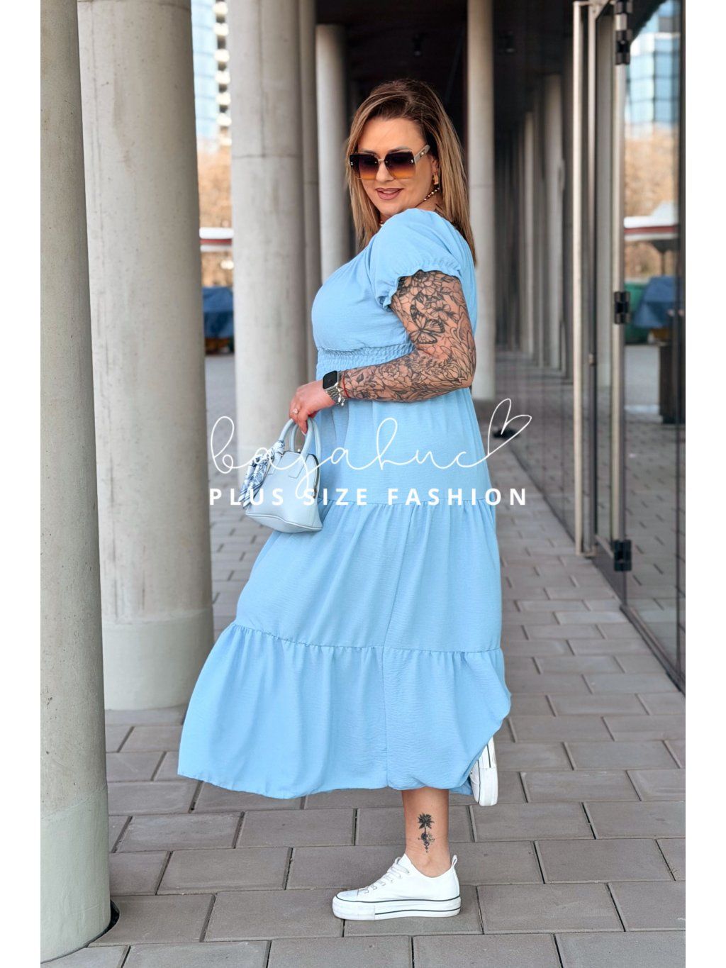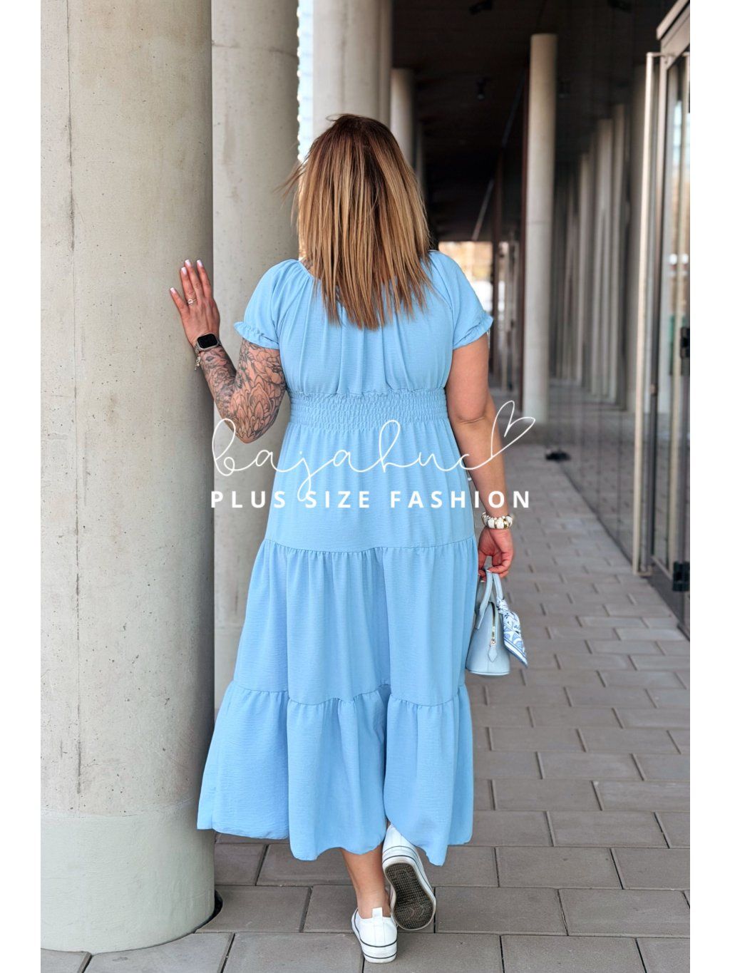 Dámske maxi šaty s rozšírenou sukňou pre moletky Dilena svetlomodré