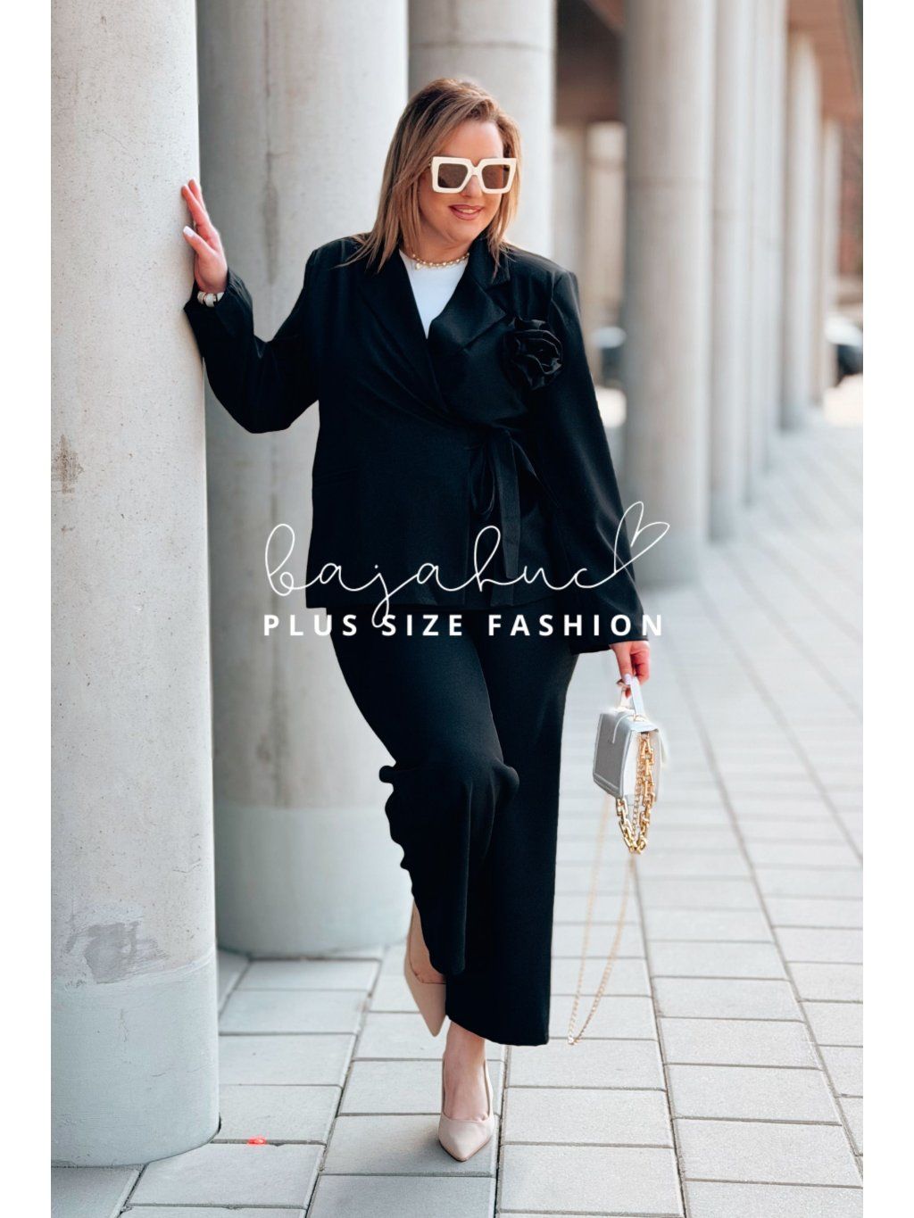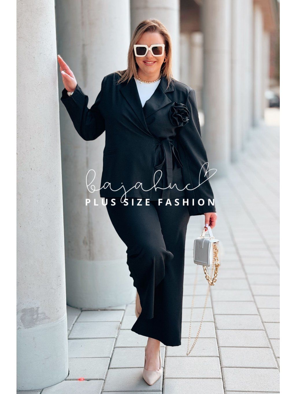 Elegantný dámsky komplet pre moletky VIKIA je určený pre ženy s krivkami, ktoré majú radi eleganciu, štýl a komfort pri nosení. Komplet tvorí sako a nohavice. Je ušitý z kvalitnej a príjemnej látky, čo zaručí neskutočný komfort pri nosení. Sako je možné vďaka zavinovaniu prispôsobiť postave. Je oživené odopínateľnou ružou. Nohavice majú elastický pás, sú rozšíreného strihu, ktorý opticky predlžuje nohy a po bokoch majú vrecká. Tento model je skvelou voľbou na mnoho príležitostí.