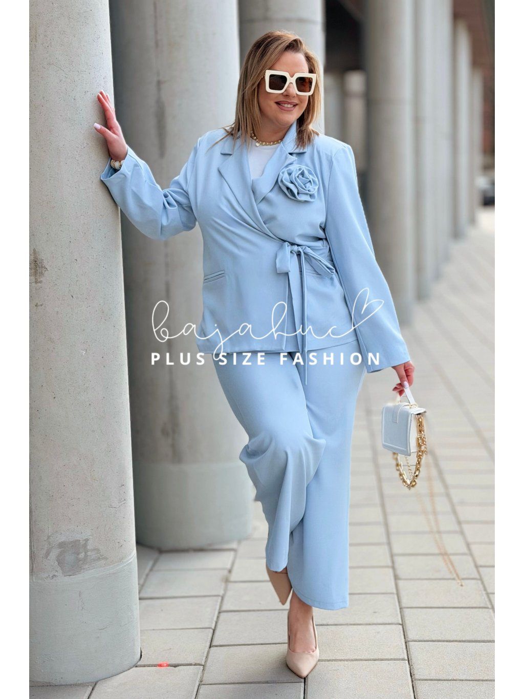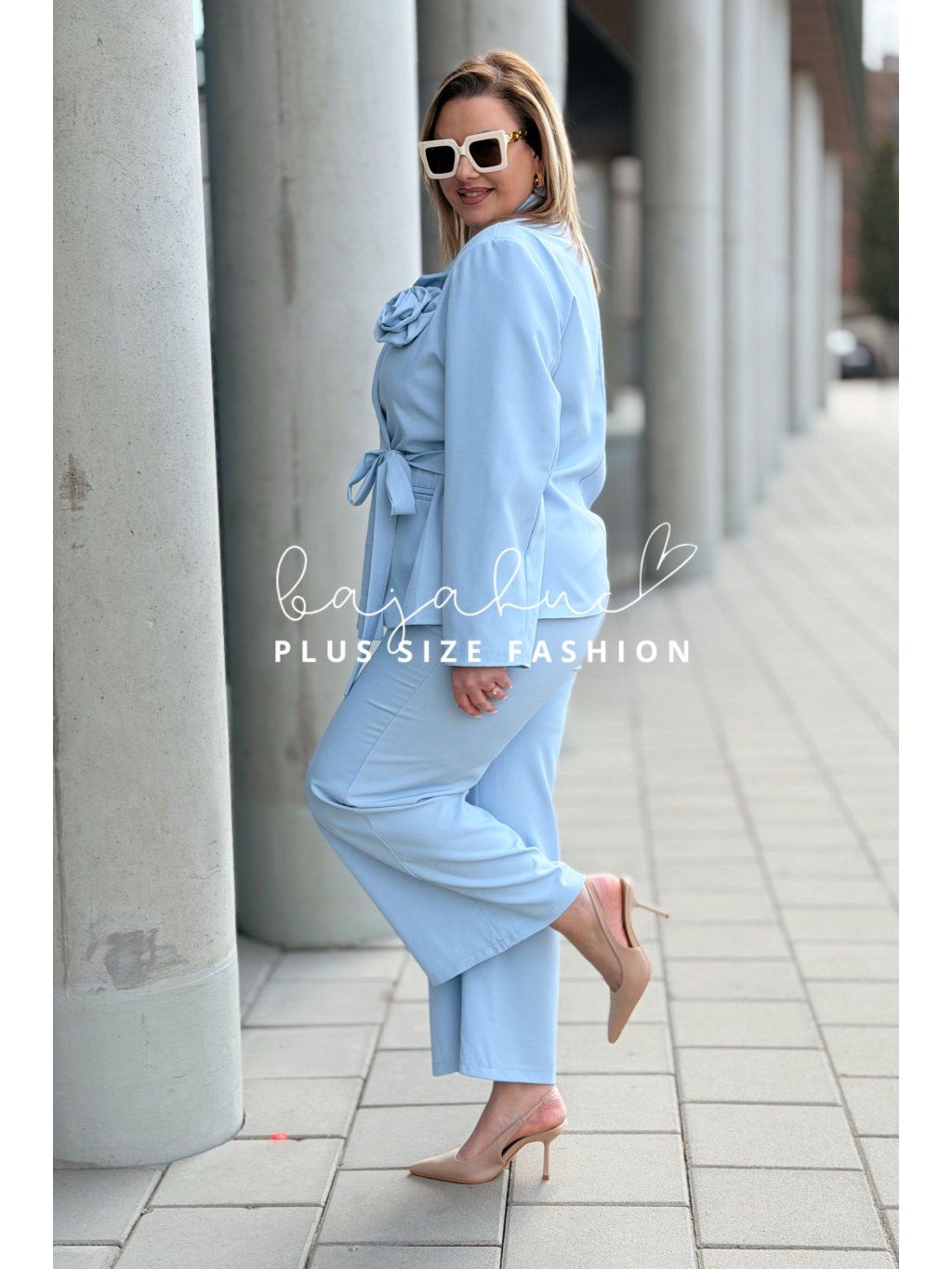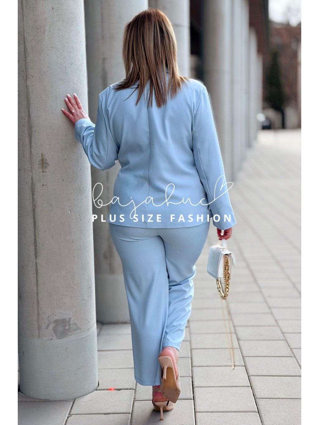 Dámsky elegantný komplet saka a nohavíc pre moletky Vikia svetlomodrý