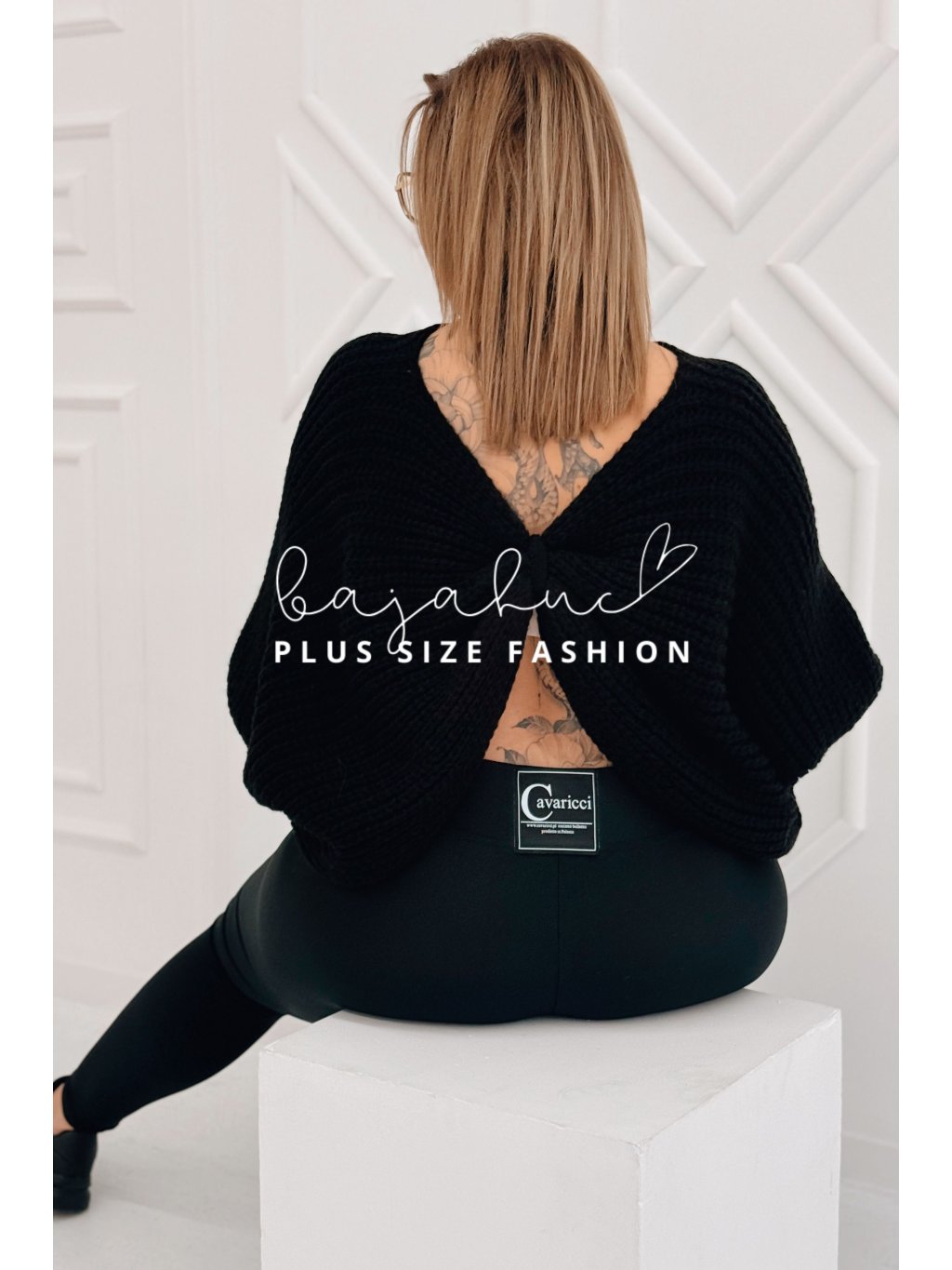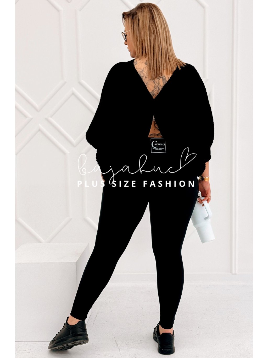Dámsky oversize sveter s výstrihom na chrbte pre moletky Sofia čierny