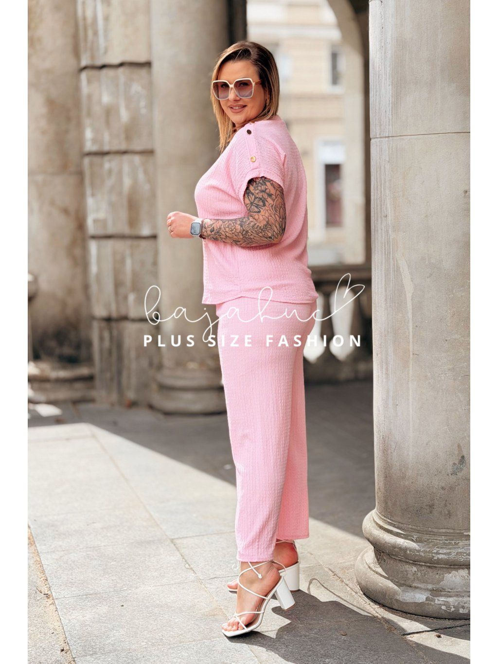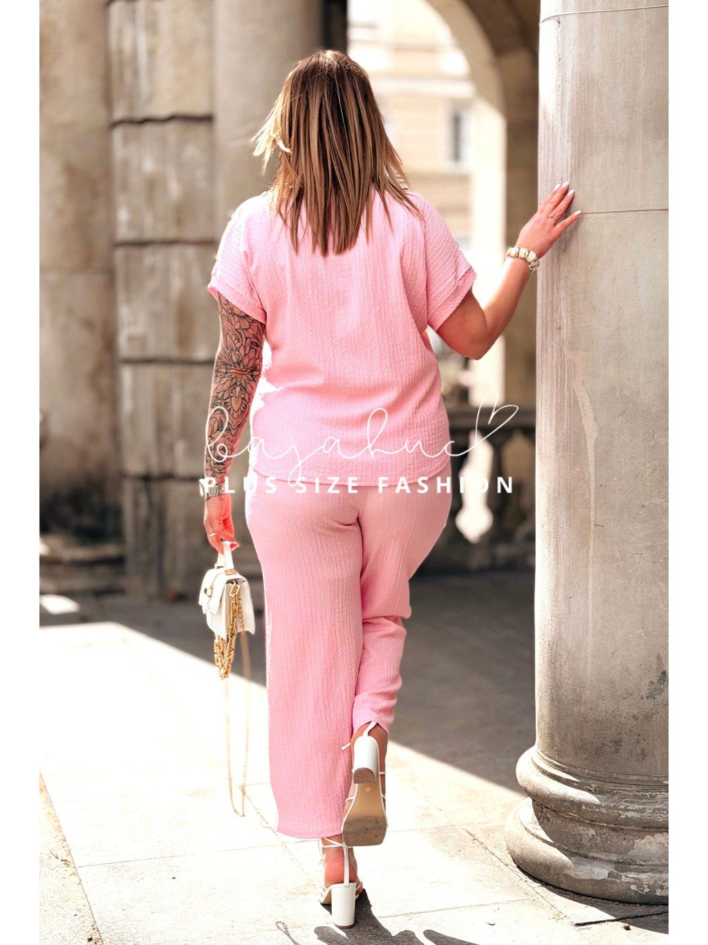 Dámsky pohodlný komplet trička a rozšírených nohavíc pre moletky Tira ružový