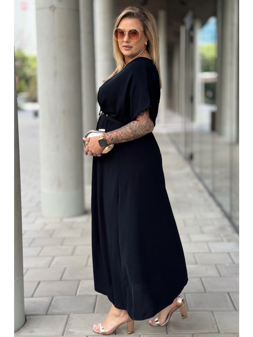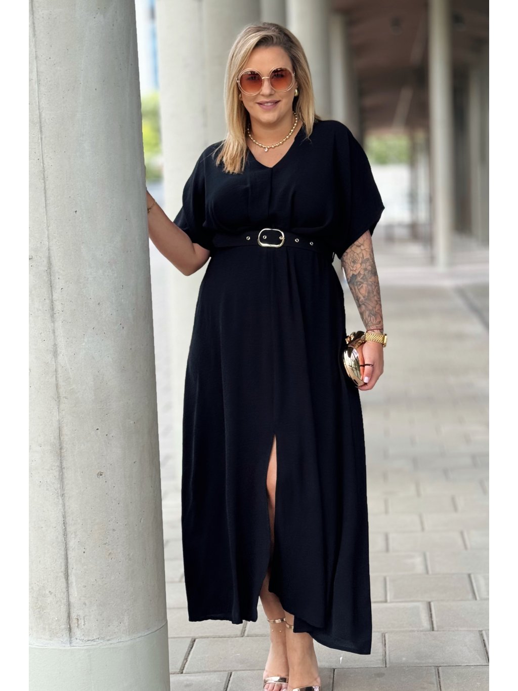 Dlhé dámske plus size šaty s opaskom Amande čierne