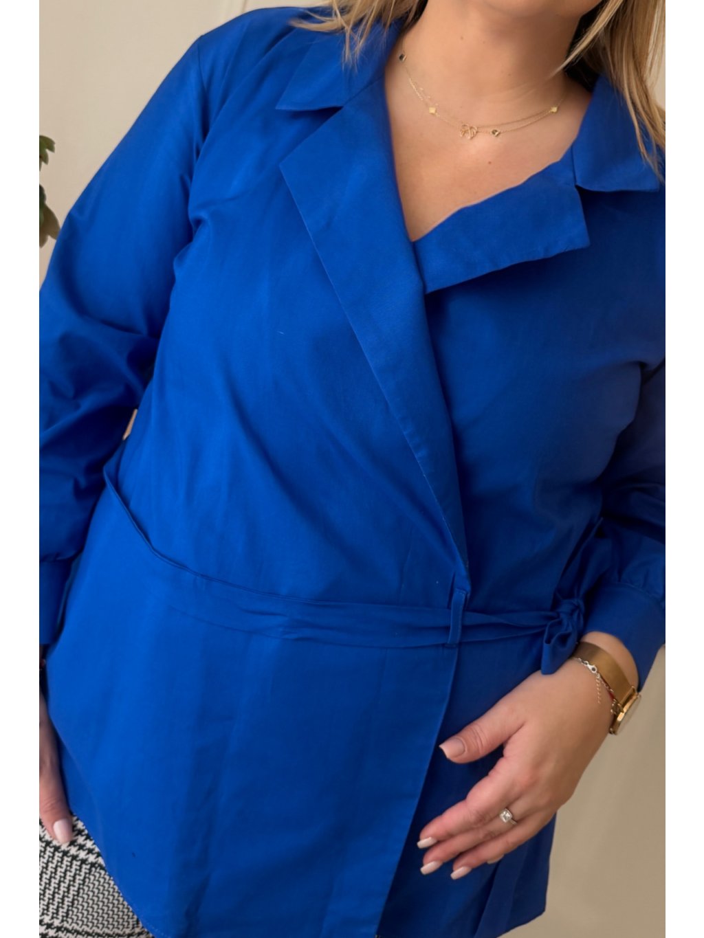 Elegantná dámska bavlnená blúzka so zaväzovaním pre moletky June kráľovská modrá