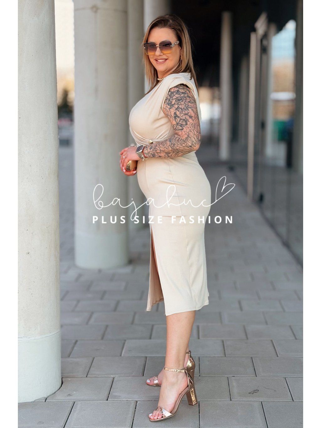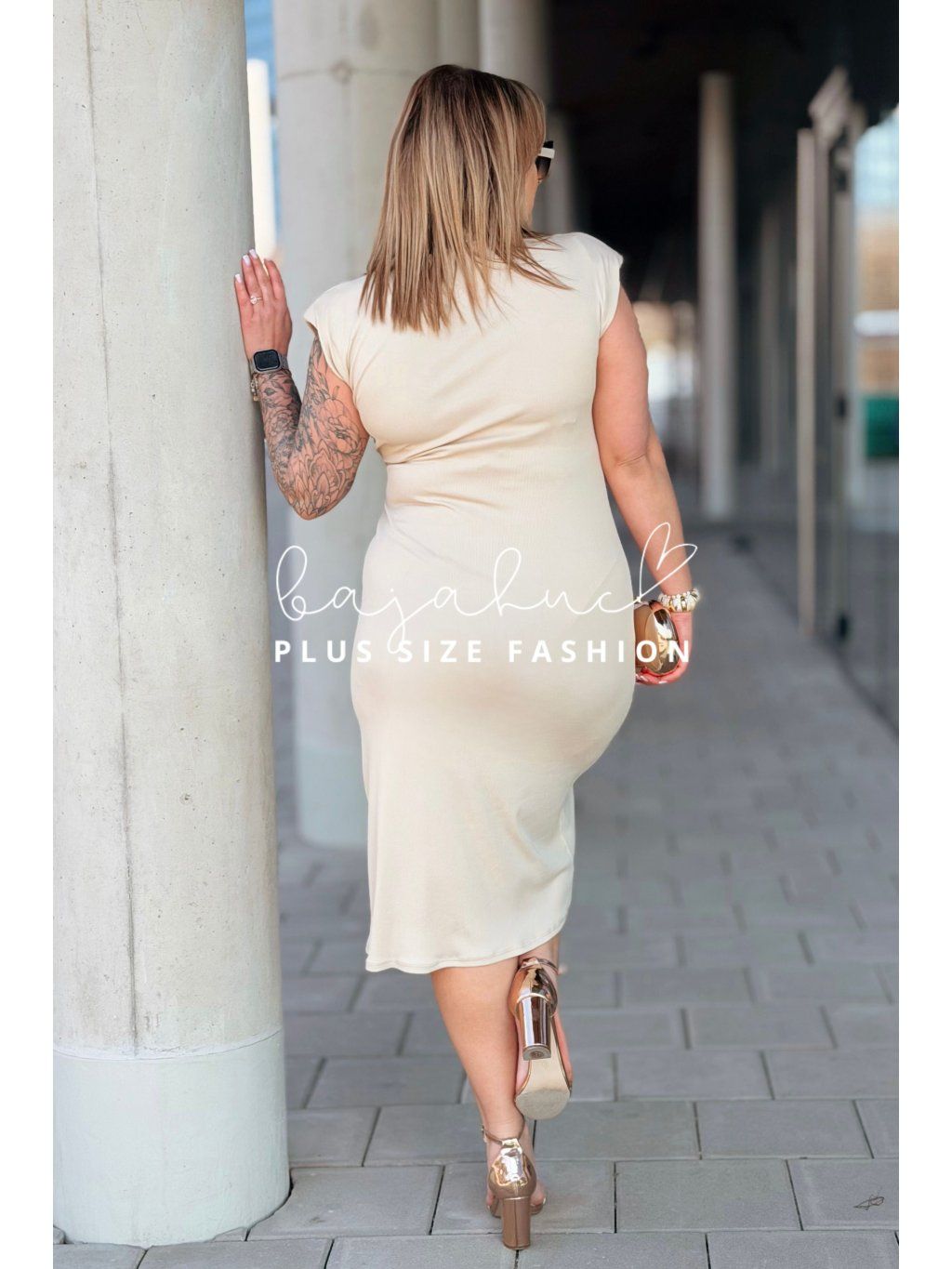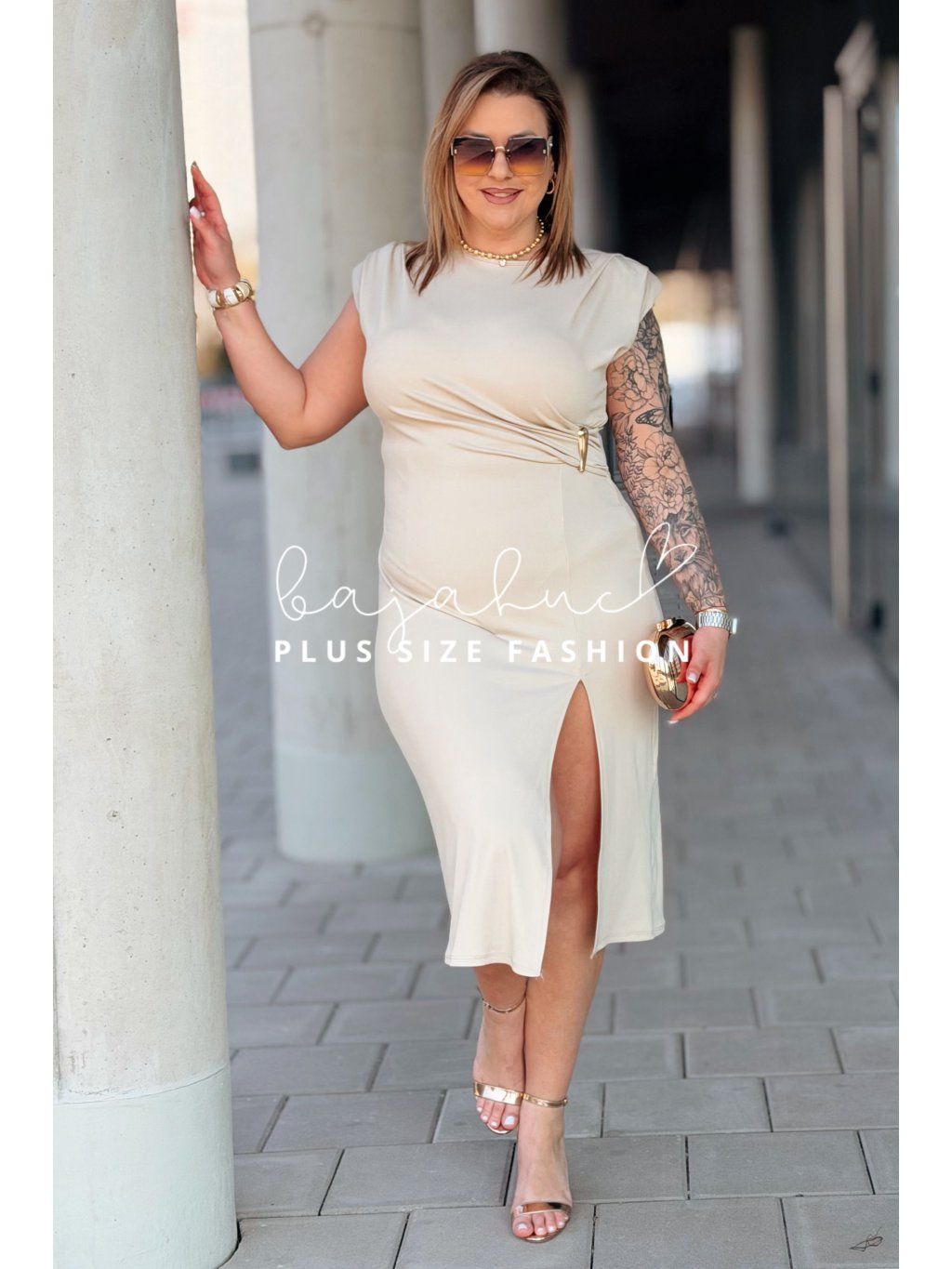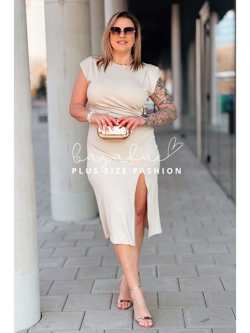 Elegantné dámske midi šaty s rozparkom pre moletky Donela béžové