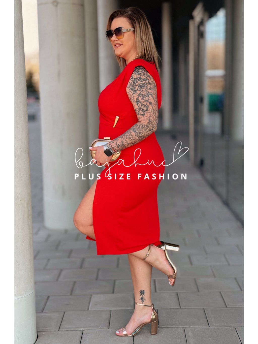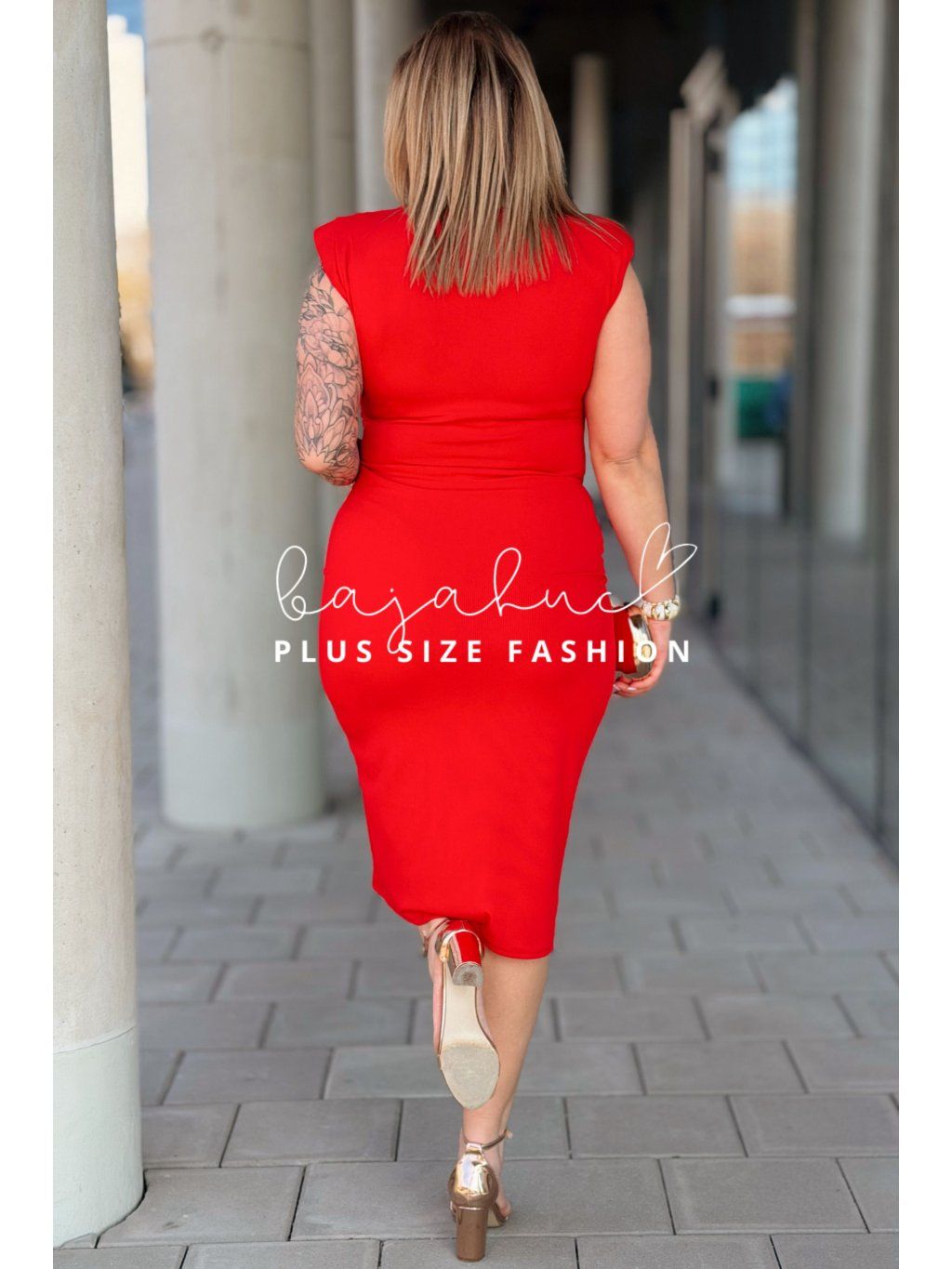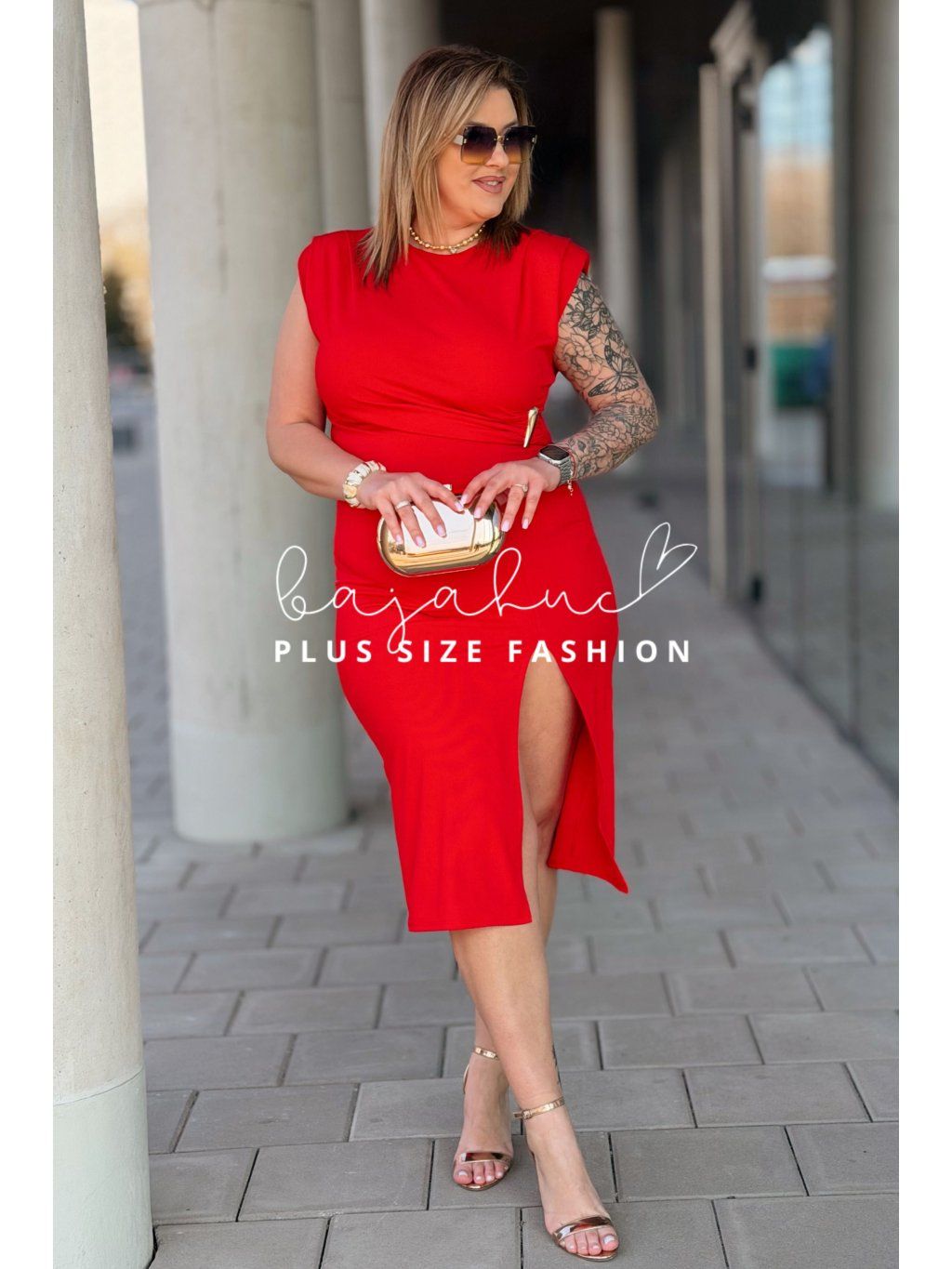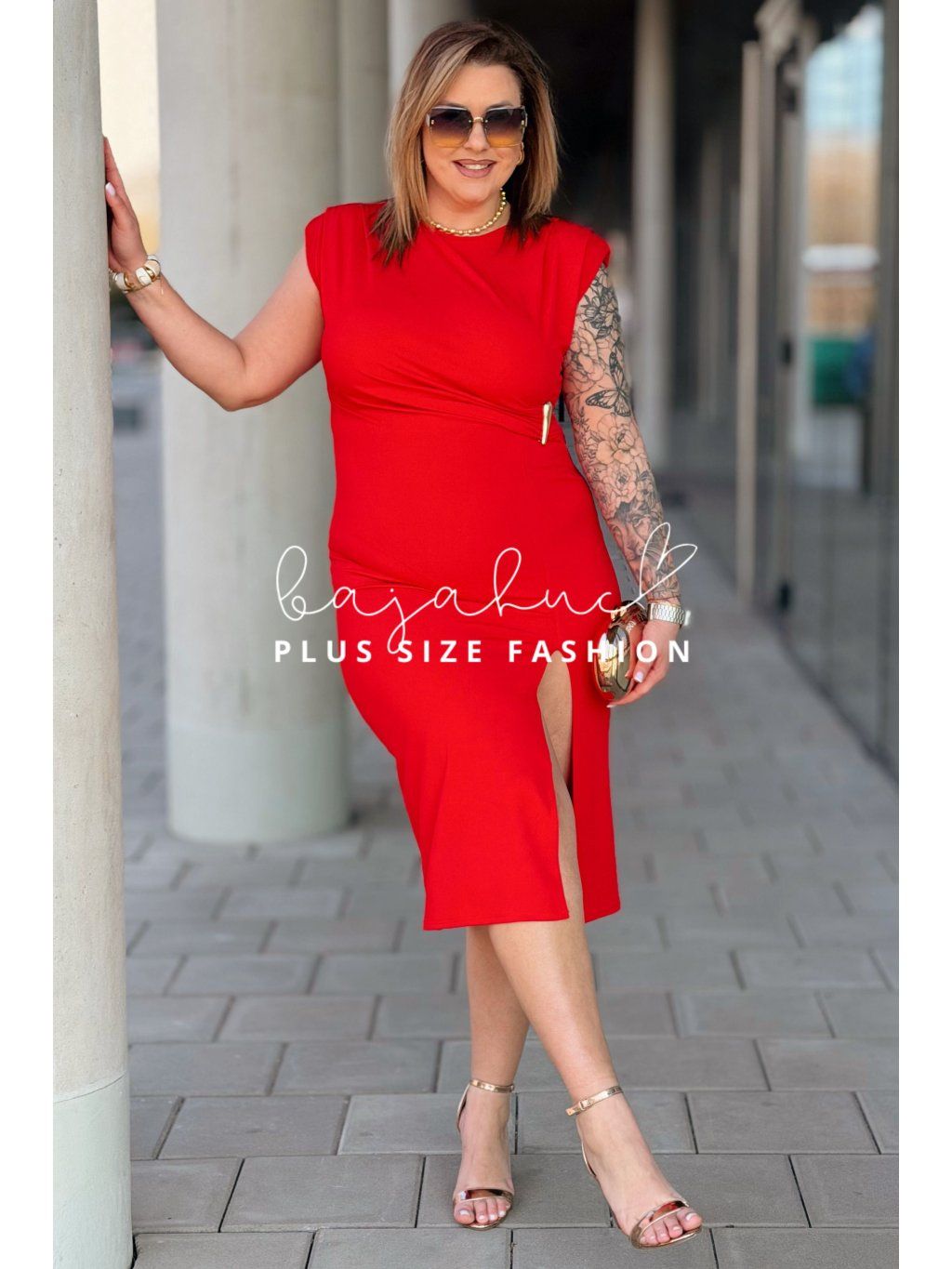 Elegantné dámske midi šaty s rozparkom pre moletky Donela červené