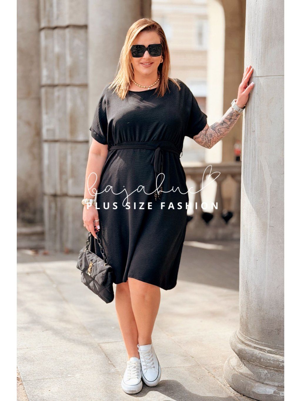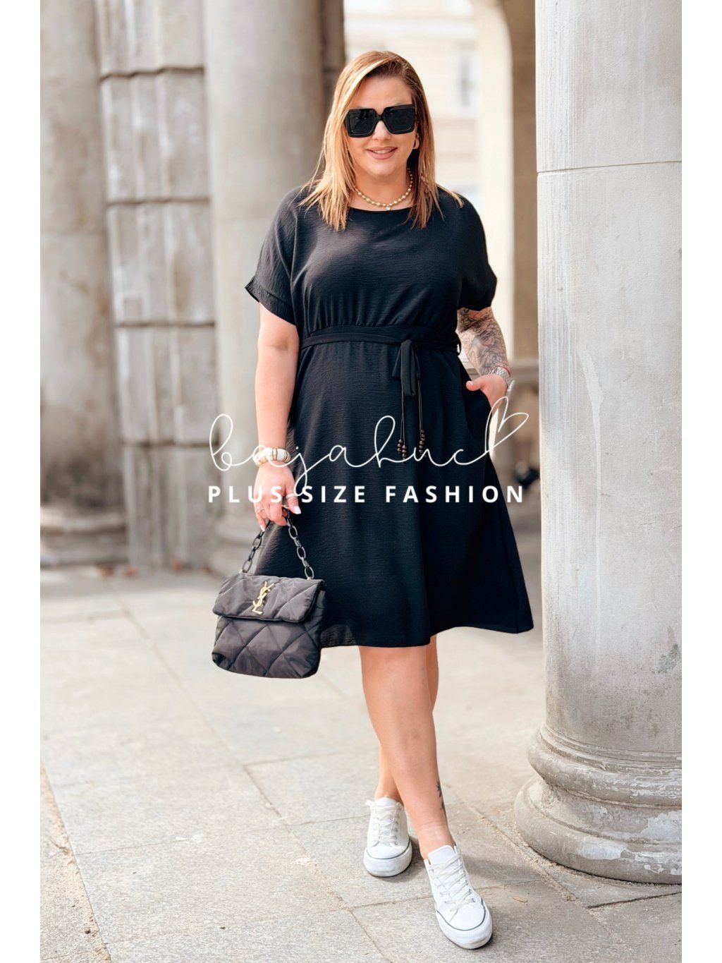 Krátke plus size šaty LUANITA sú navrhnuté pre ženy, ktoré chcú vyzerať oslnivo počas celého dňa a zároveň majú radi pohodlie a voľnosť. Ide o model pohodlného strihu s praktickými vreckami po bokoch. Šaty majú okrúhly výstrih a krátke rukávy. Vďaka svojmu strihu zakryjú nedokonalosti postavy, budete sa v nich cítiť sviežo a príjemne. Opasok model oživuje a pomáha zvýrazniť pás. Je to model, ktorý skvelo sadne na postavu, vďaka čomu sa každá žena bude cítiť žensky a štýlovo počas celého dňa.