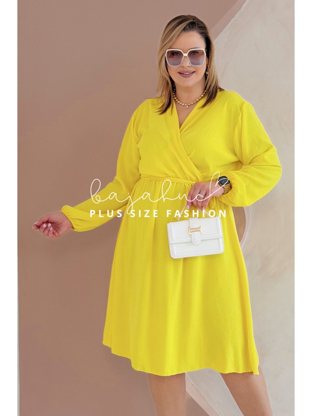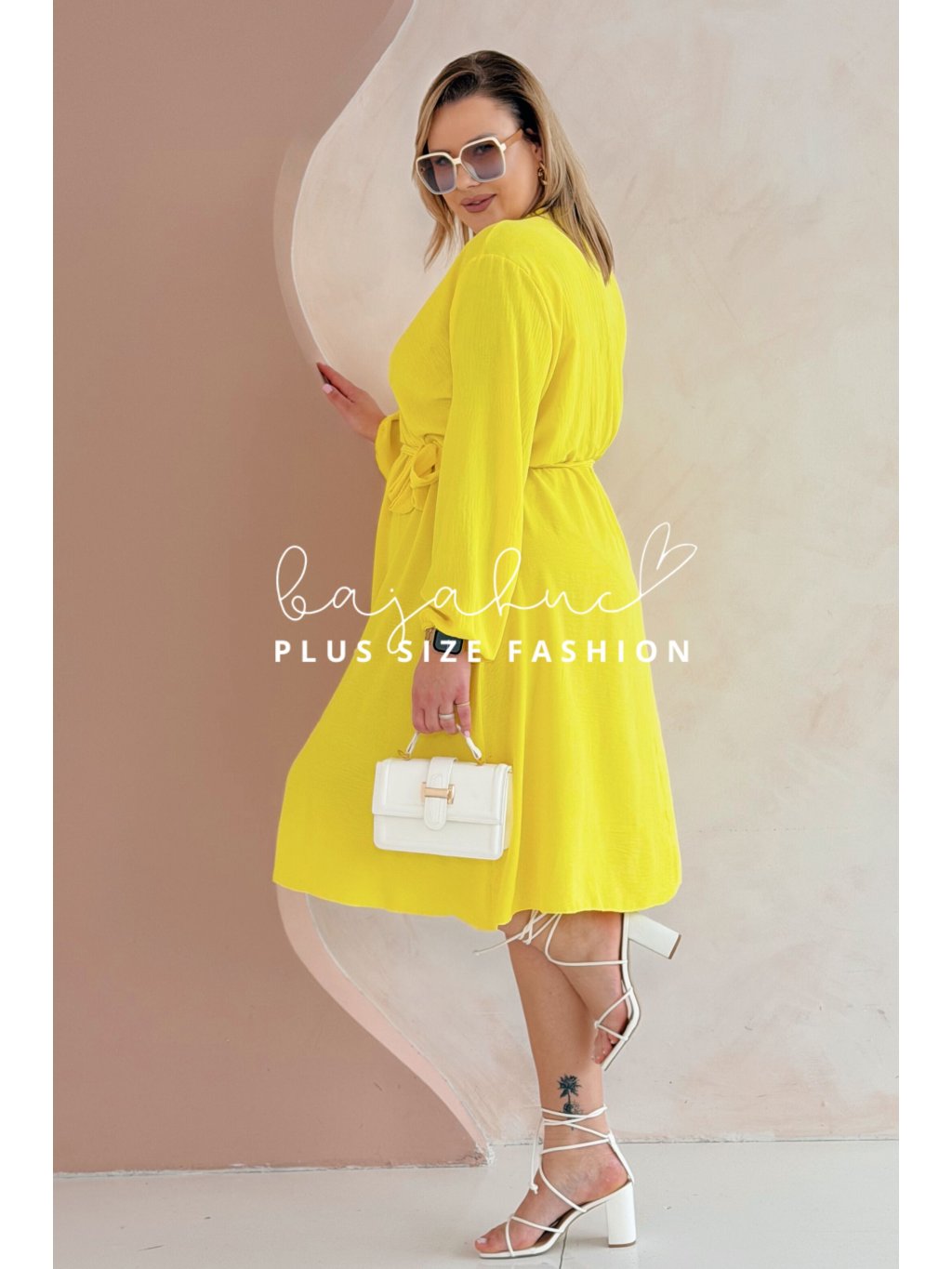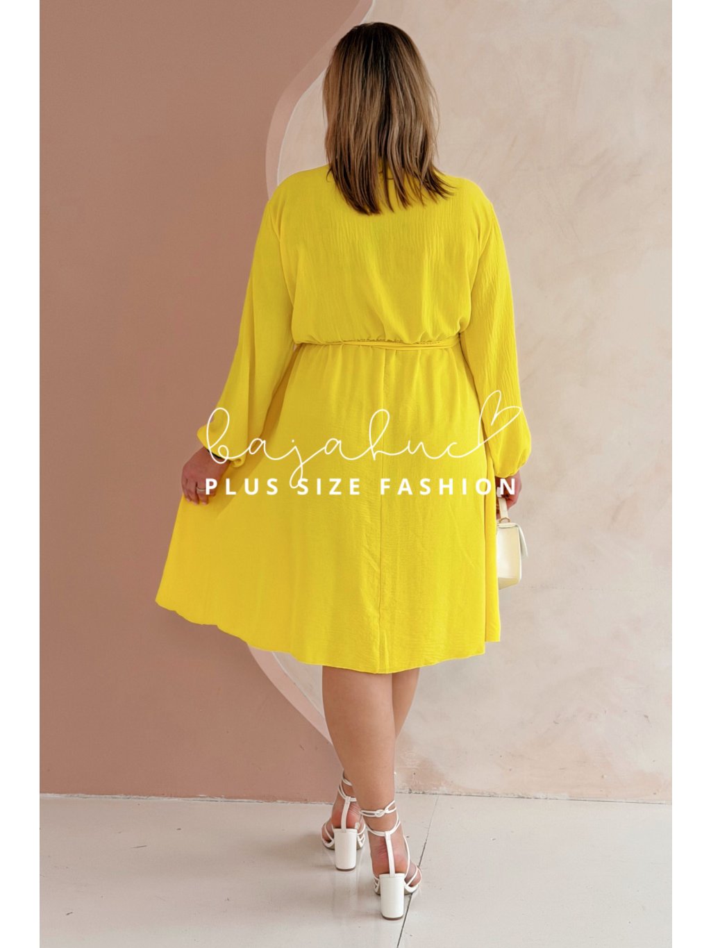 Jednoduché krátke dámske šaty s opaskom pre moletky Matilda žlté