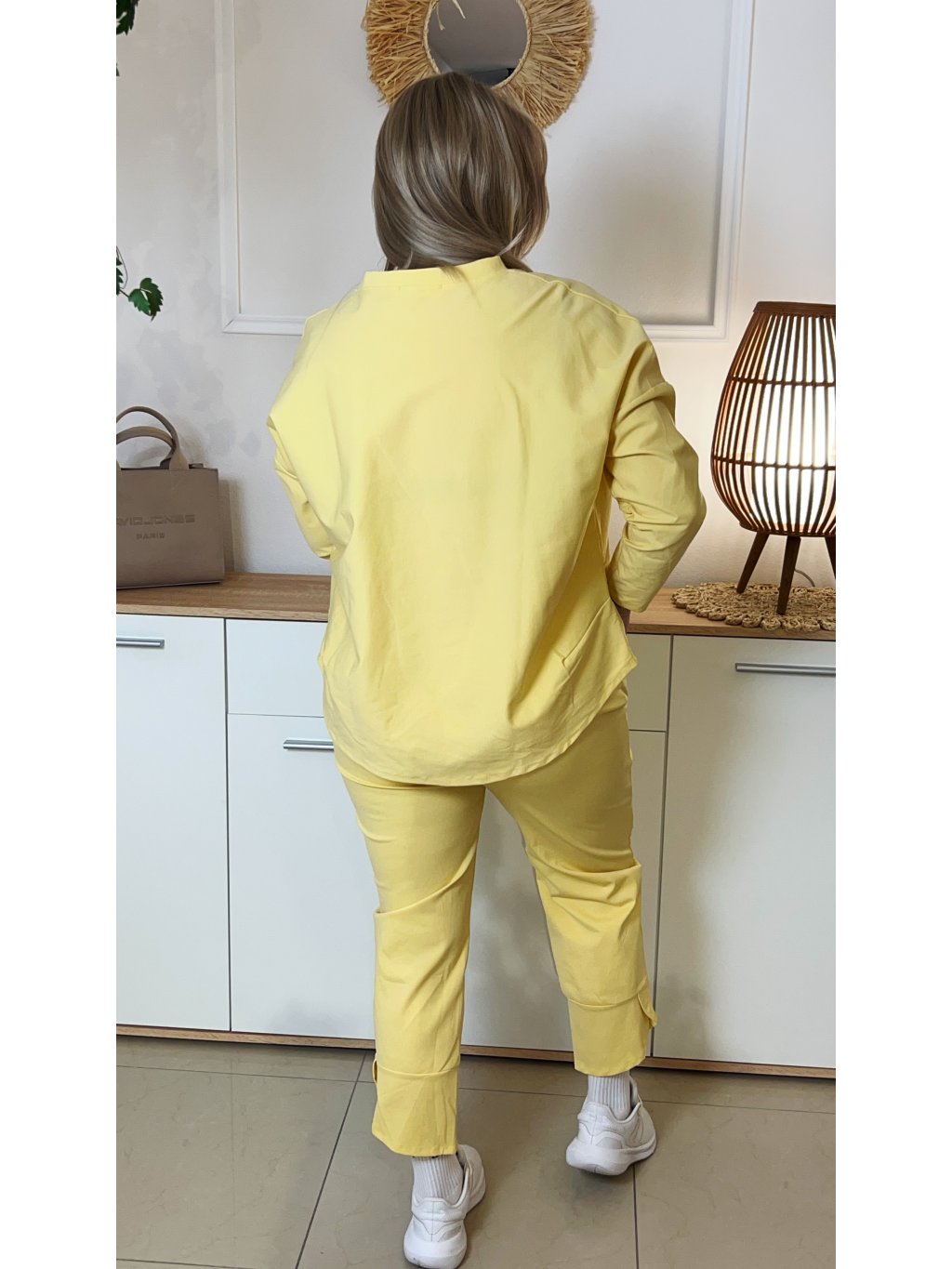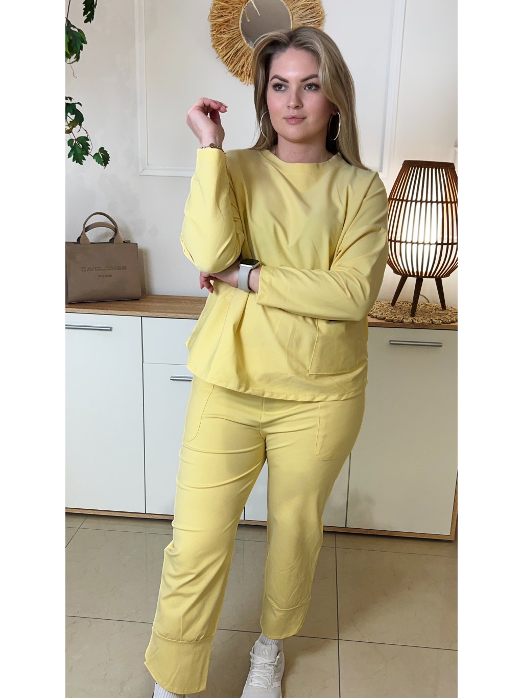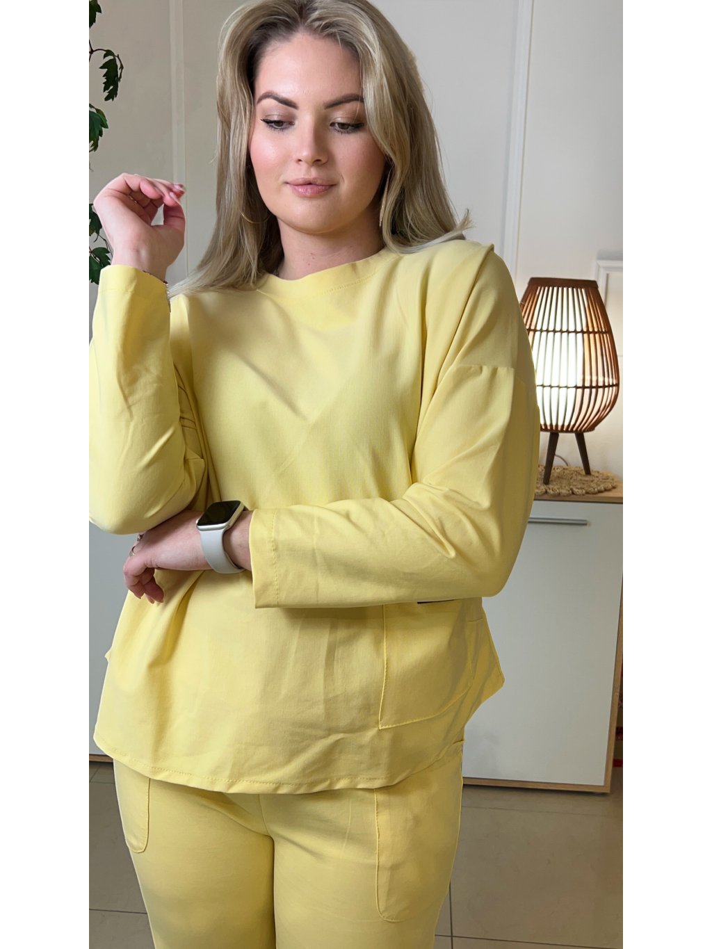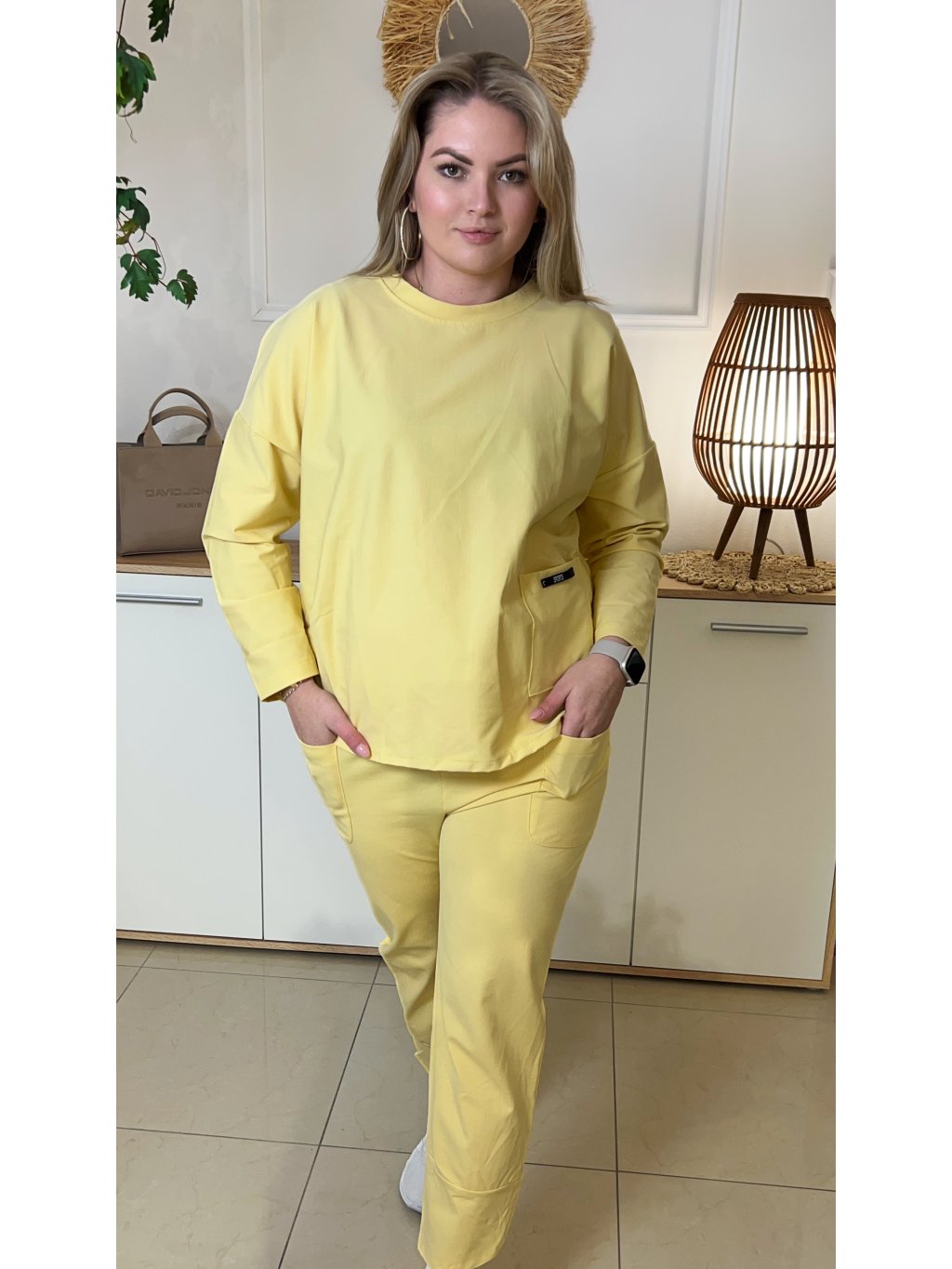 Jednoduchý pohodlný plus size komplet Julie žltý