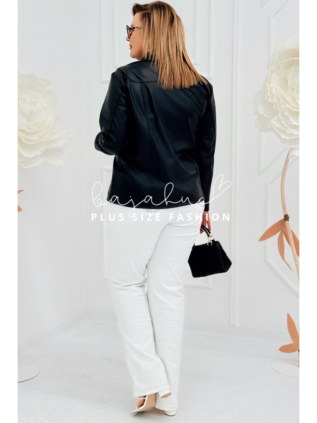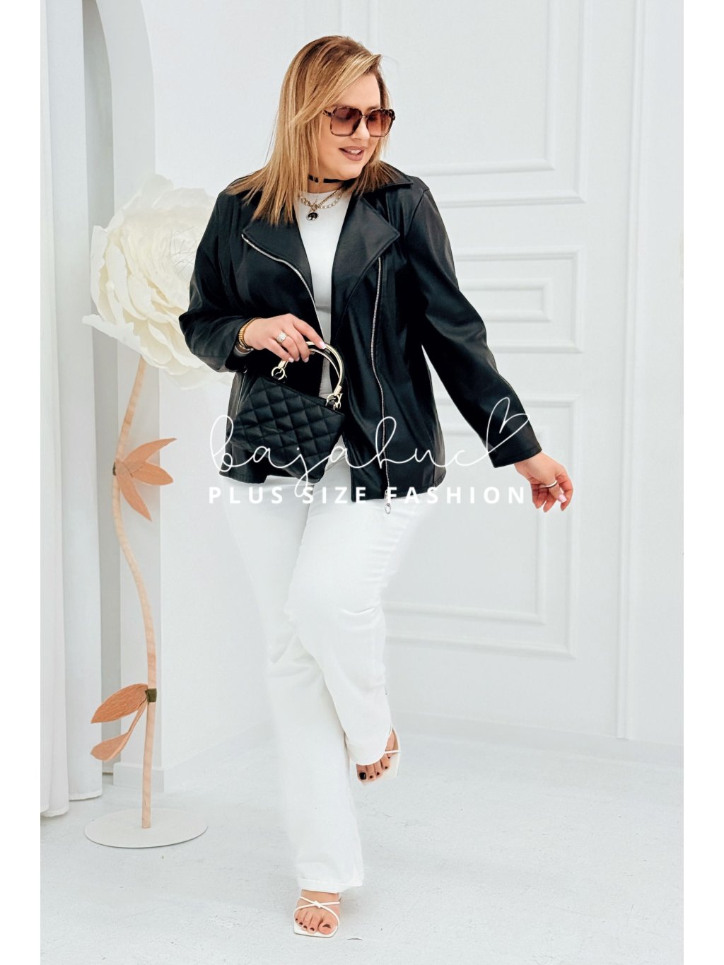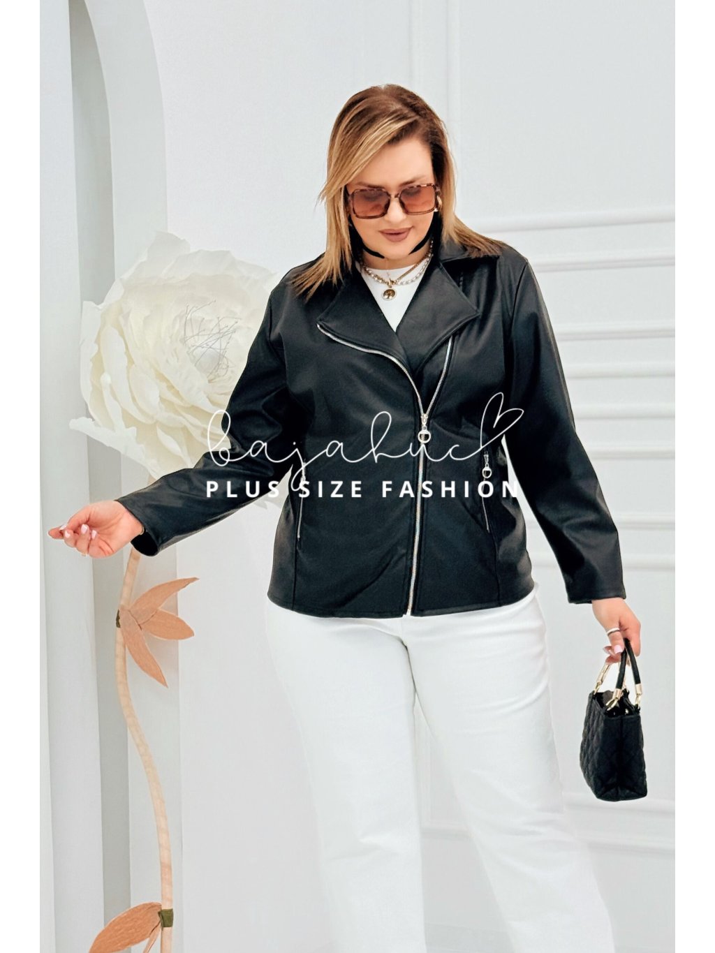 Plus size koženka ROMANA, ktorú je možné skombinovať či už s džínsami a teniskami pre ležérny vzhľad, alebo s vysokými opätkami a elegantnými nohavicami pre elegantný a štýlový look. Ak hľadáte univerzálny kúsok, v ktorom vyniknete, a ktorý skombinujete v bežný deň na nákupy či prechádzky a zároveň ho využijete do práce, alebo do mesta s priateľmi, tak tento model sa stane hitom vášho šatníka.