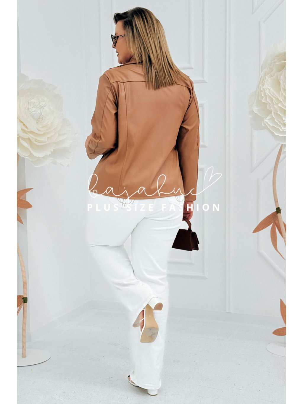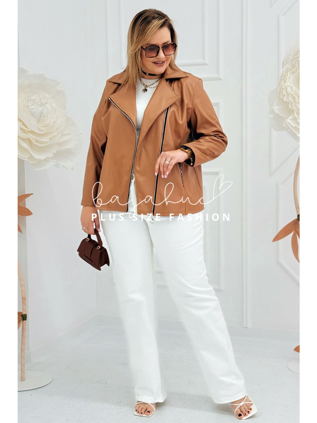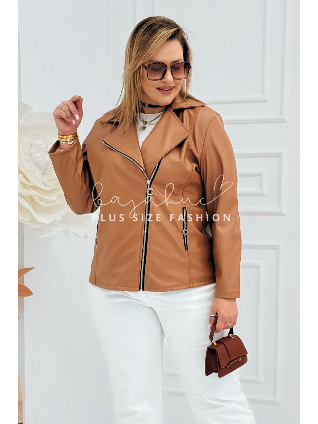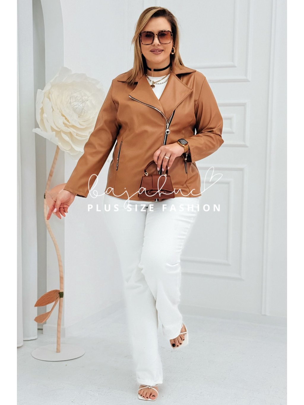 Plus size koženka ROMANA, ktorú je možné skombinovať či už s džínsami a teniskami pre ležérny vzhľad, alebo s vysokými opätkami a elegantnými nohavicami pre elegantný a štýlový look. Ak hľadáte univerzálny kúsok, v ktorom vyniknete, a ktorý skombinujete v bežný deň na nákupy či prechádzky a zároveň ho využijete do práce, alebo do mesta s priateľmi, tak tento model sa stane hitom vášho šatníka.