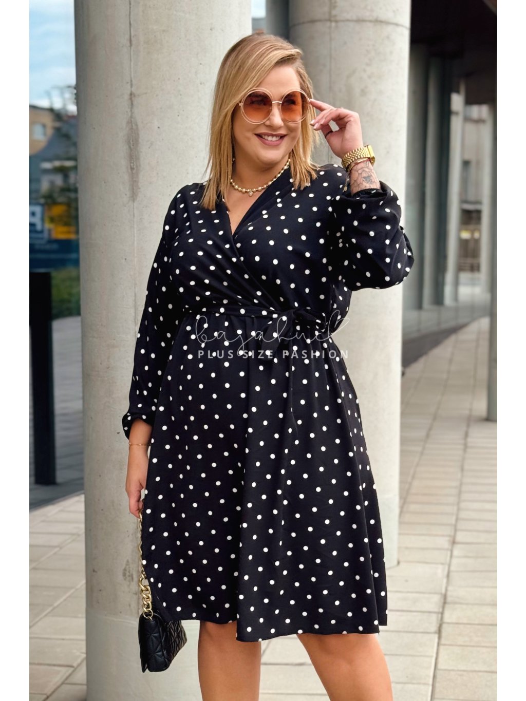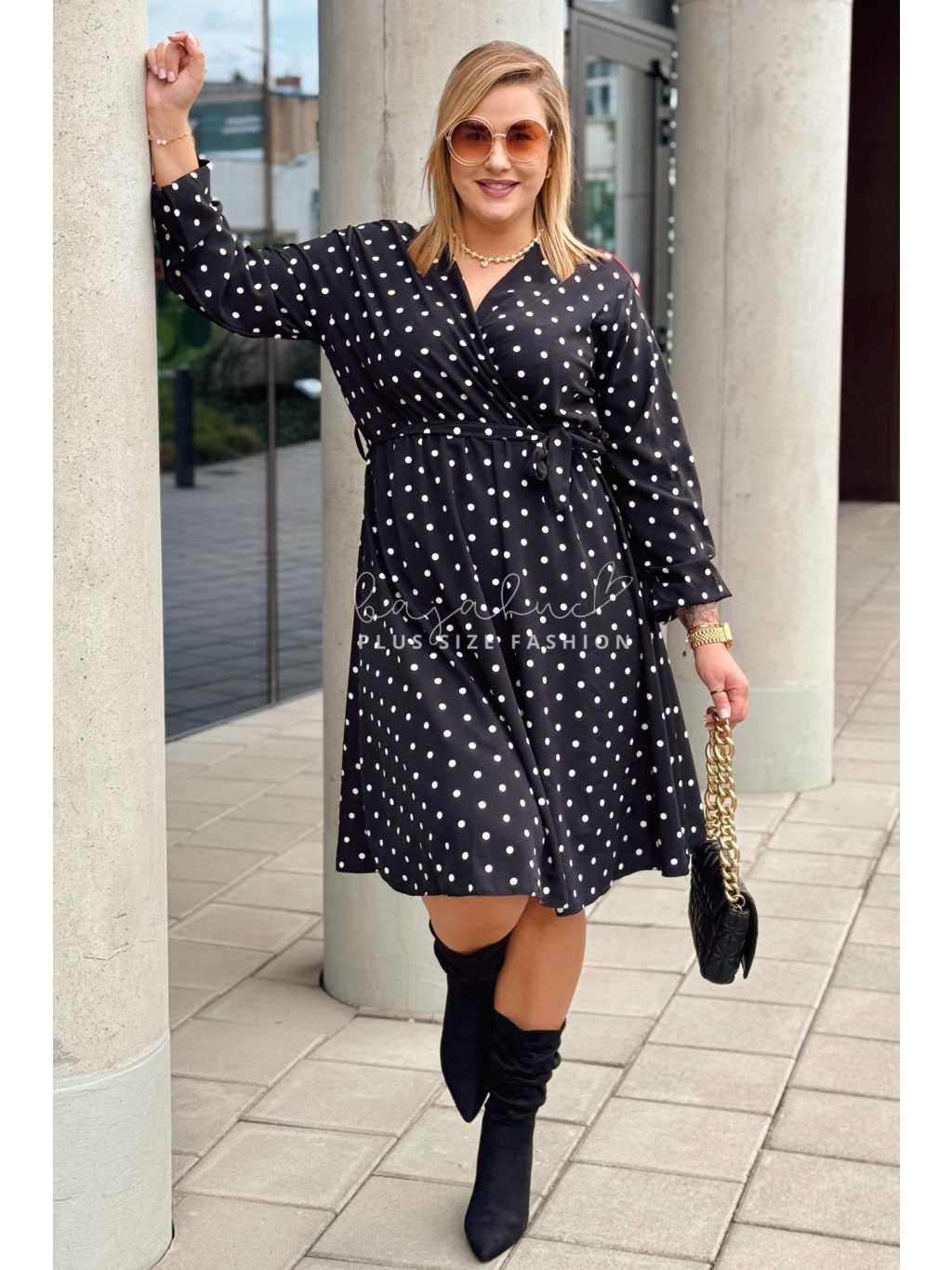 Dámske plus size šaty MARTA sú navrhnuté pre ženy s krivkami podľa najnovších módnych trendov. V týchto šatách vďaka ich prevedeniu budete vyzerať elegantne a očarujúco, a zároveň sa budete cítiť pohodlne. Ide o model s rozšírenou sukňou, ktorá rafinovane zakryje nedokonalosti postavy. Šaty majú prekladaný výstrih, ktorý opticky predlžuje krk, a dlhé rukávy ukončené jemnou gumičkou pre väčšie pohodlie. Vďaka gumke v páse sa šaty prispôsobia postave, opasok model oživuje a zvýrazňuje pás. Je to model, ktorý skvelo sadne na postavu, vďaka čomu sa každá žena bude cítiť žensky a štýlovo počas celého dňa.