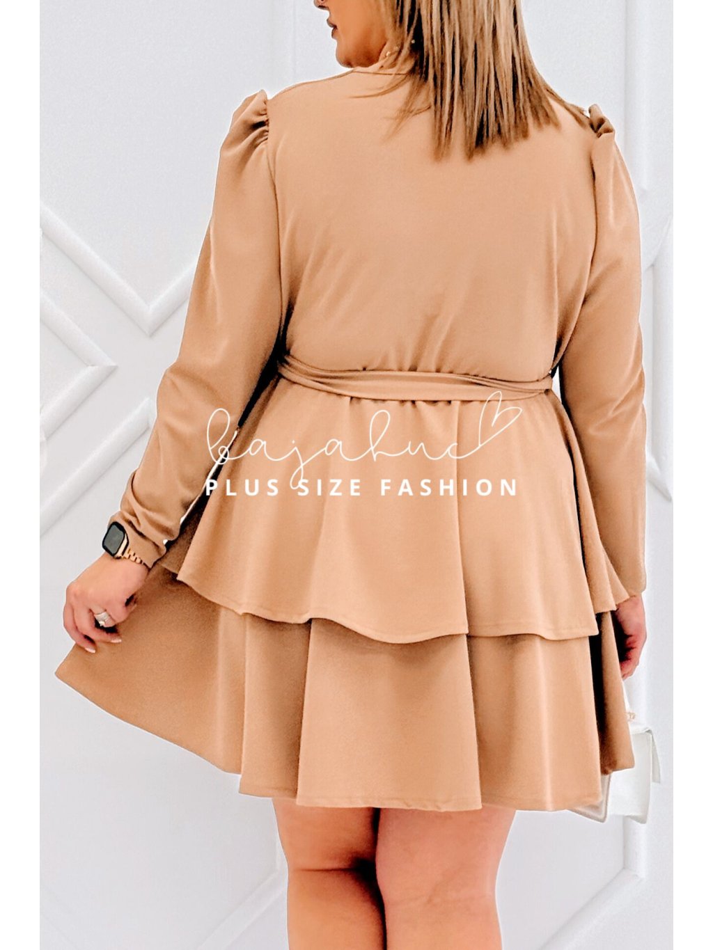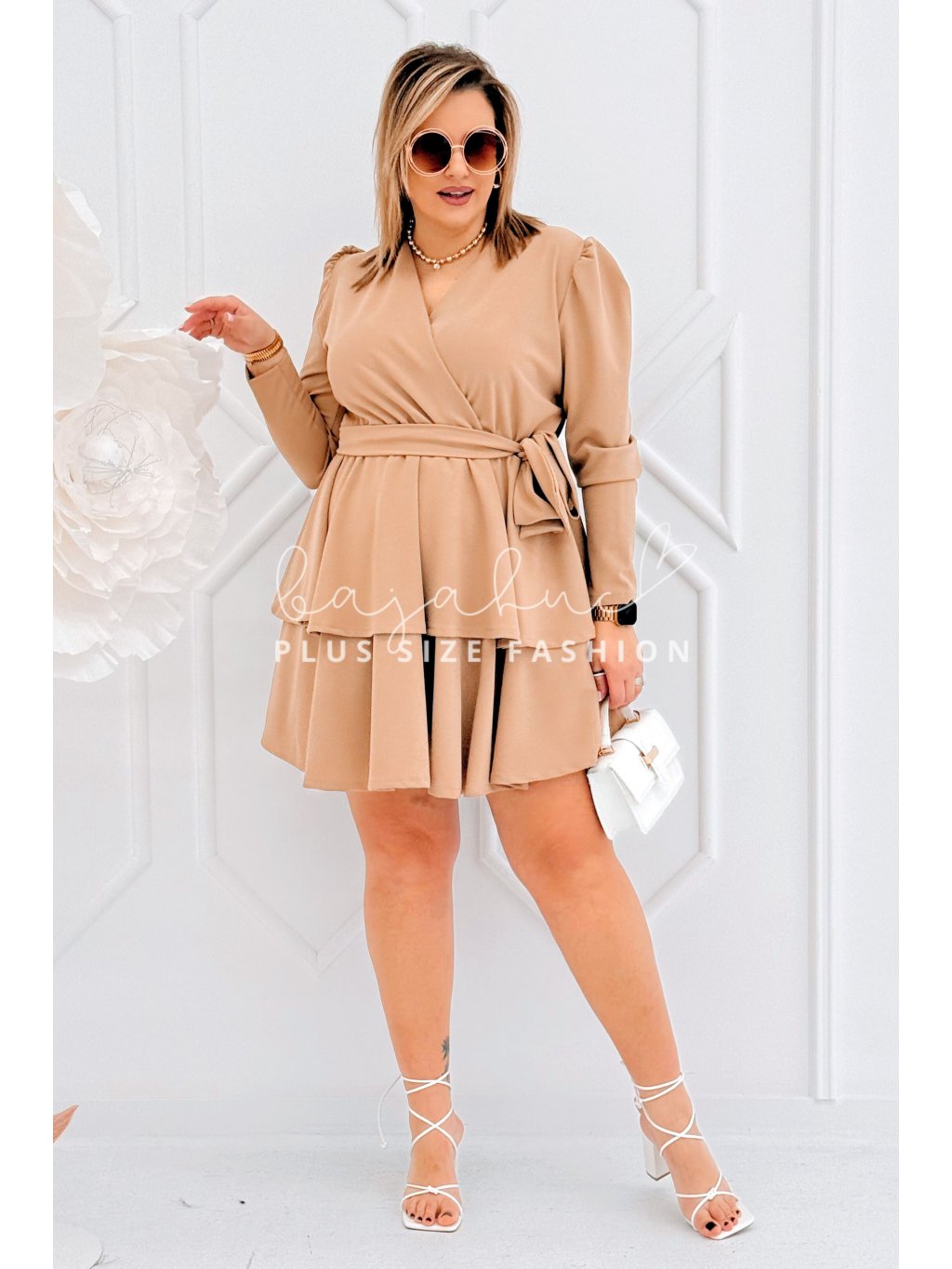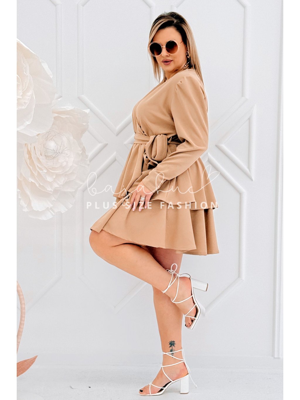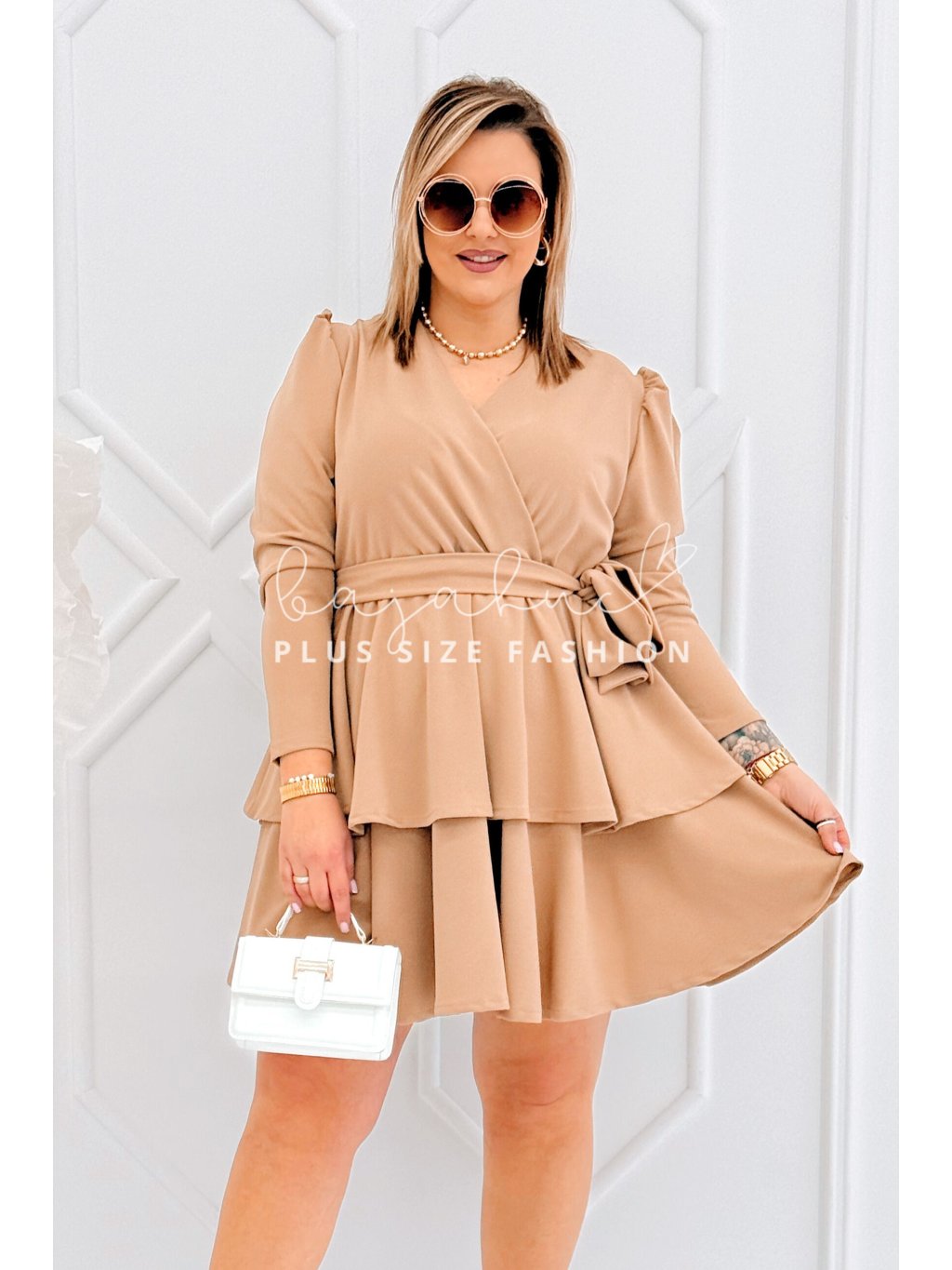 Krátke dámske šaty s rozšírenou sukňou pre moletky Rosena béžové
