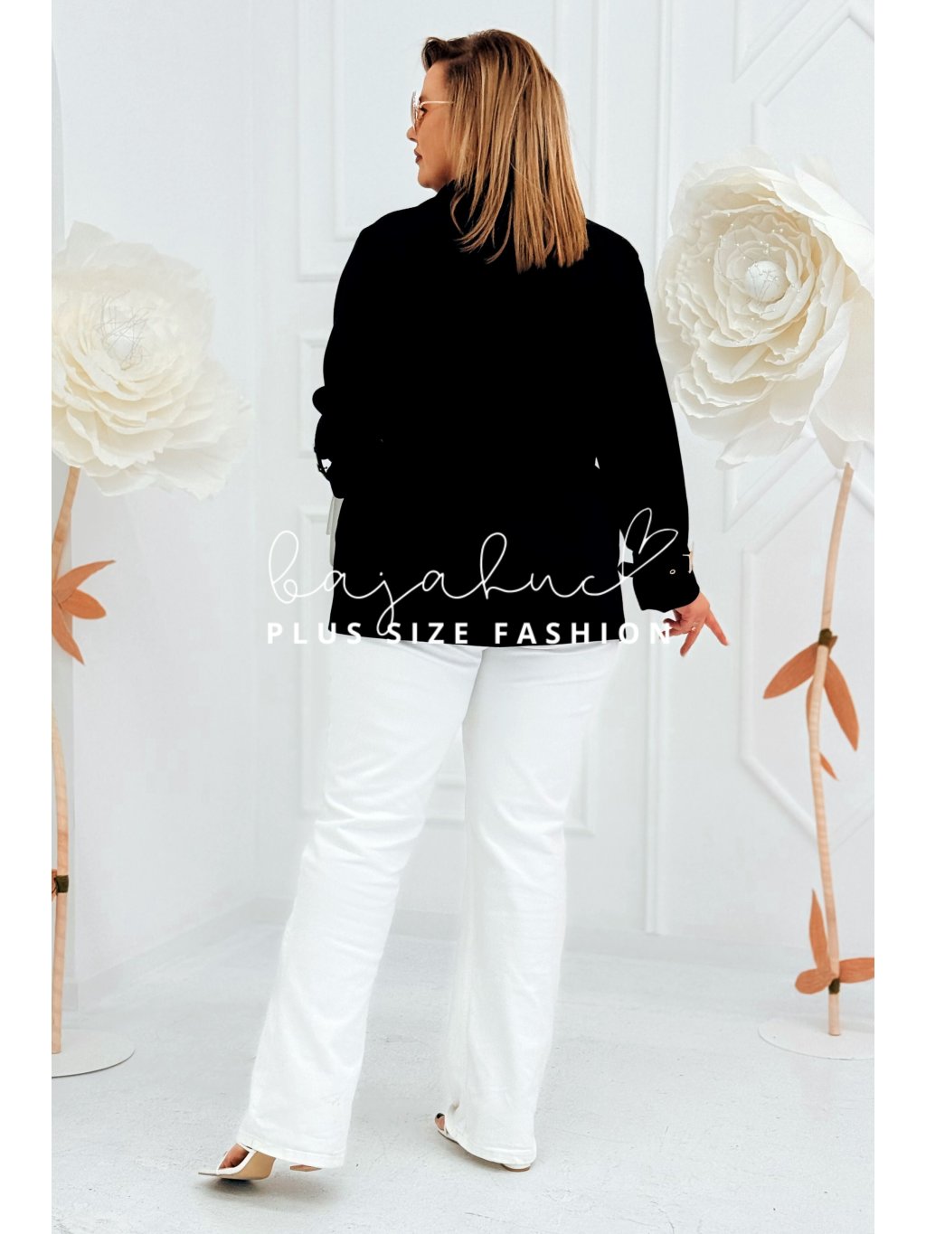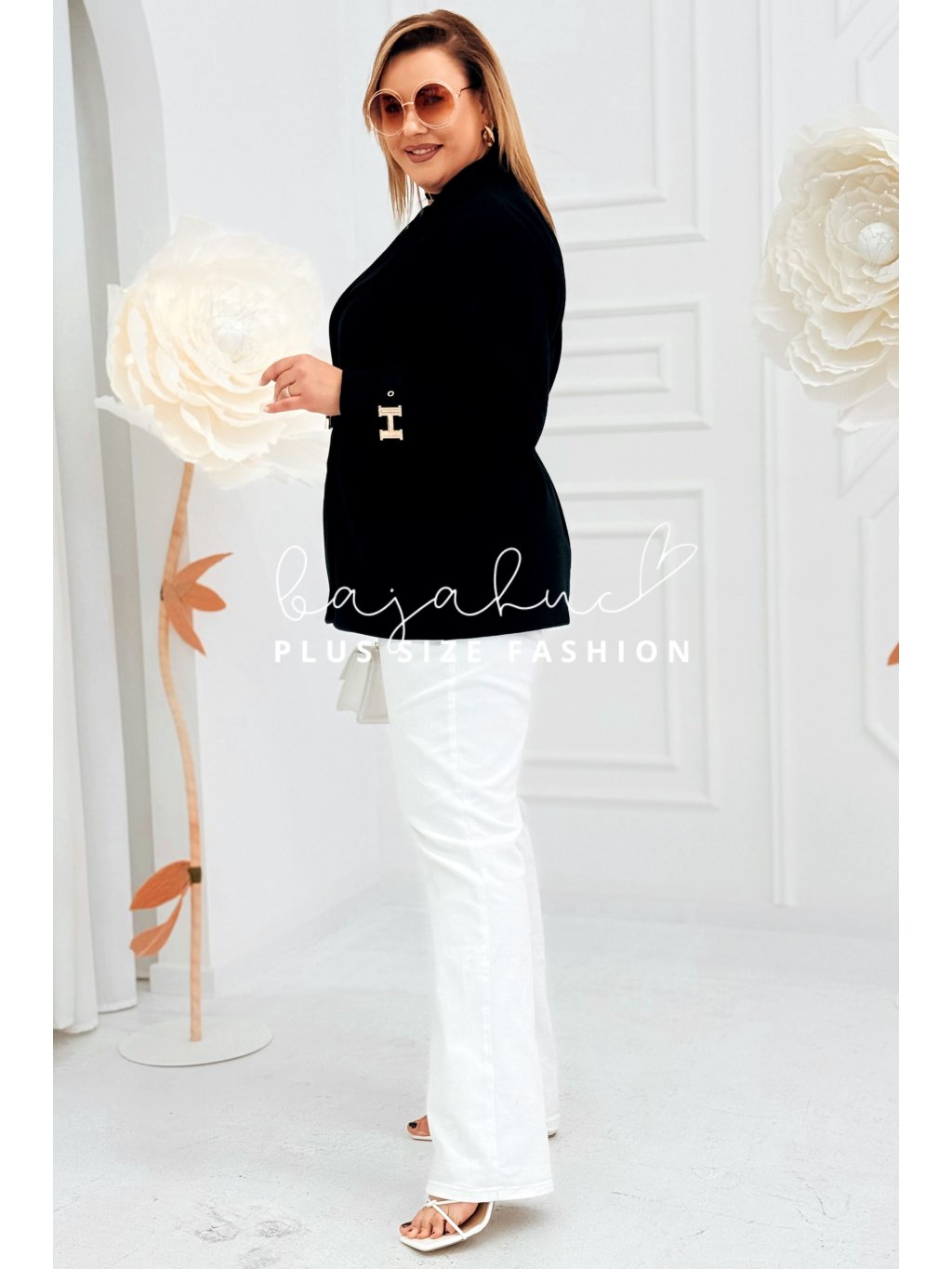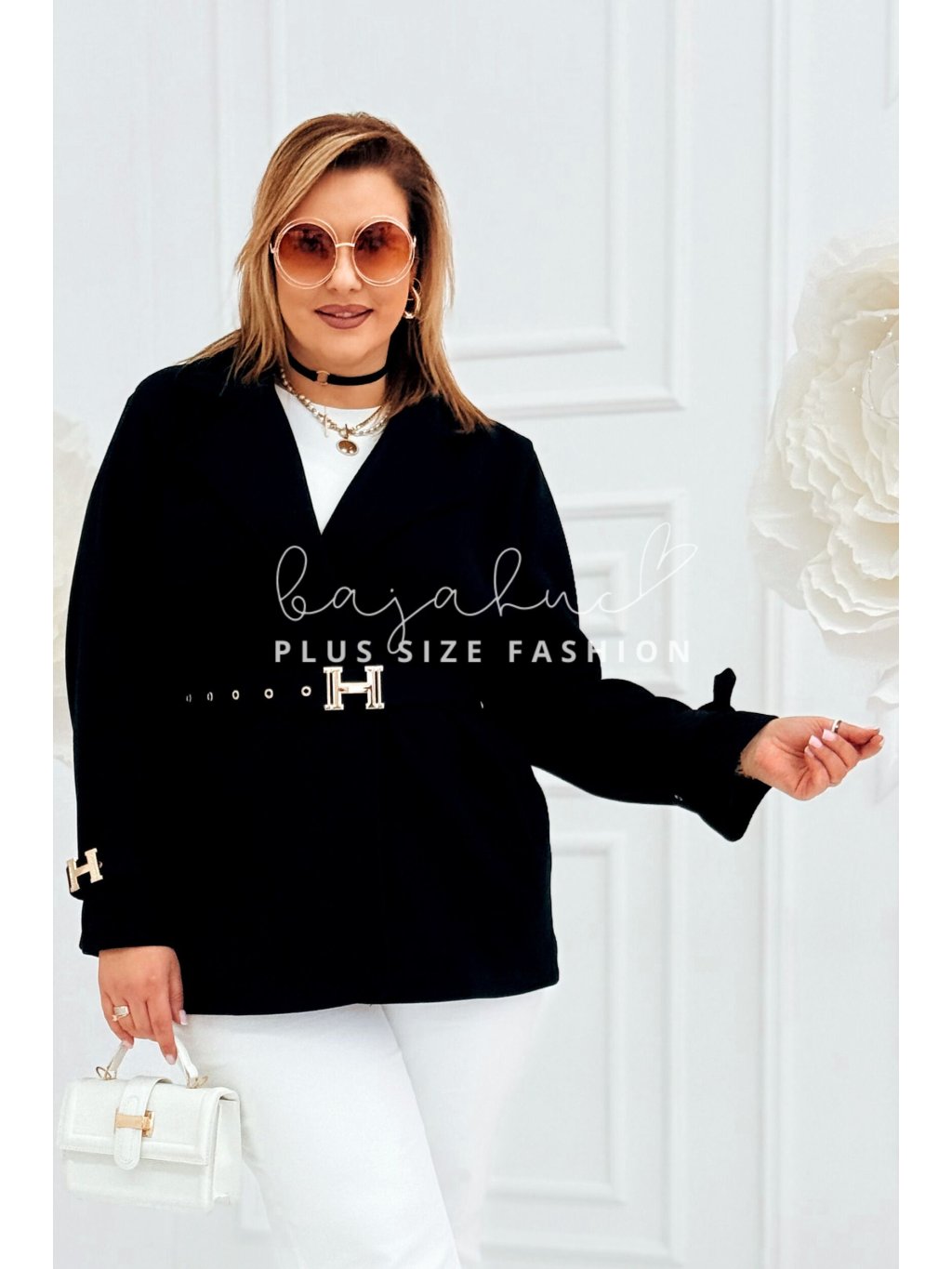 Štýlový a elegantný kúsok do jarných dní, univerzálny a ľahko kombinovateľný - taký je plus size kabát HERMOSA. Vďaka kvalitnému materiálu sa v ňom budete cítiť pohodlne a vďaka strihu a detailom budete vyzerať štýlovo a trendy. Elegantný a ženský strih dodá vášmu looku noblesu. Ide o model so zapínaním na gombíky, doplnený o opasok s ozdobnou brošňou, ktorý pomáha zvýrazniť pás a ženské krivky. Rukávy sú oživené prackami. Kabát pre moletky HERMOSA je skvelý nadčasový kúsok, ktorý si zamilujete a stane sa vašim obľúbeným kúskom v šatníku.