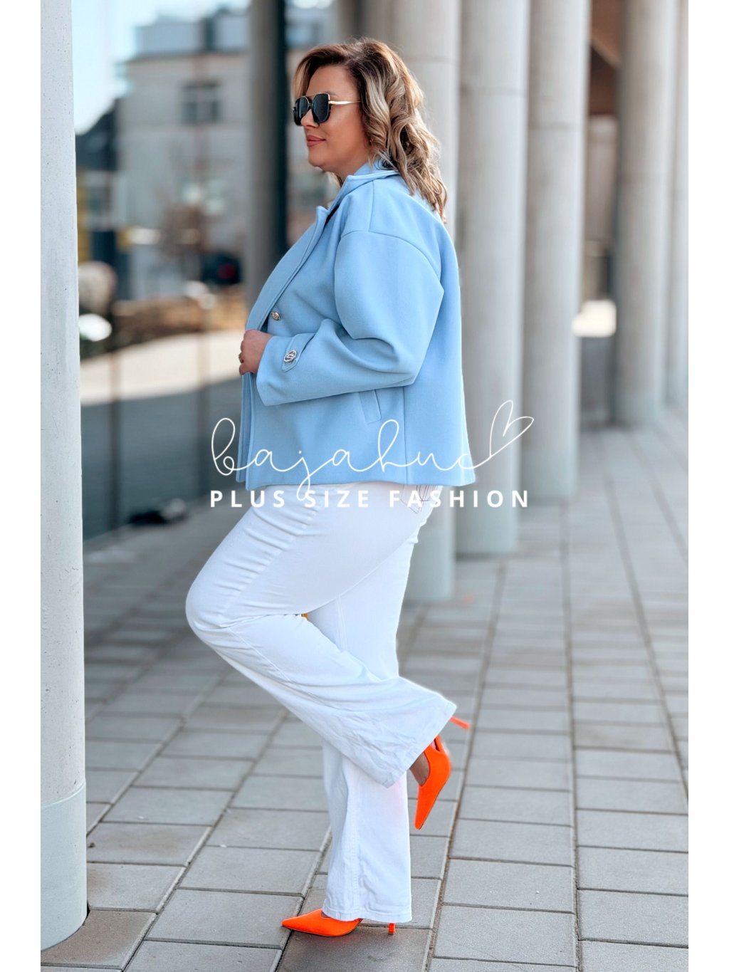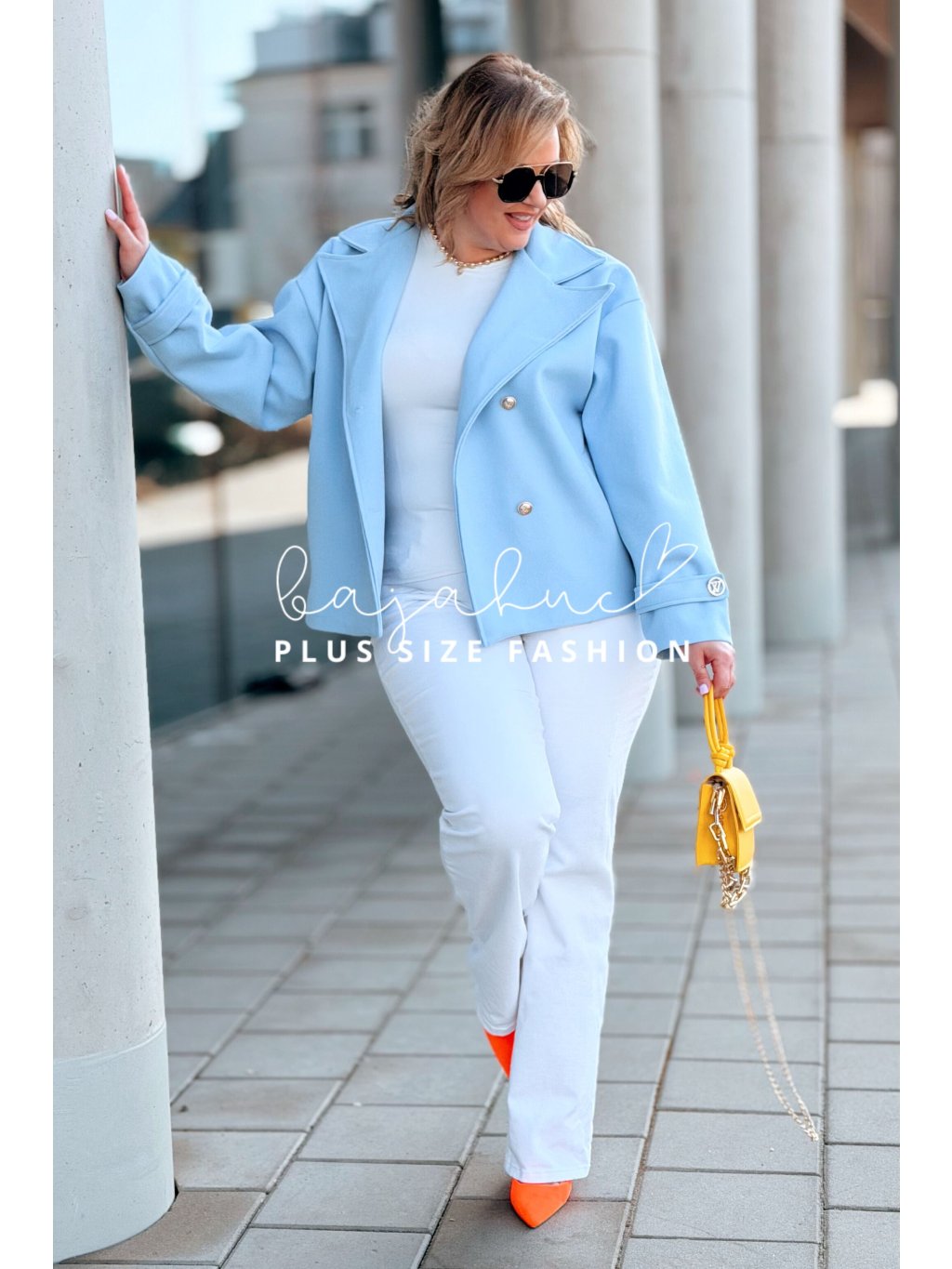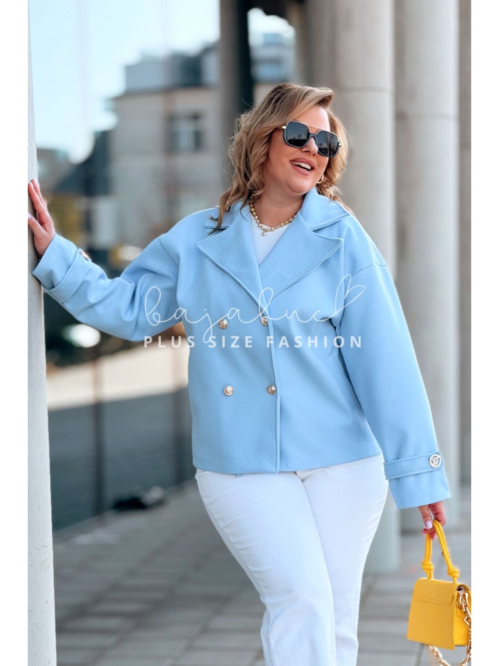 Krátky prechodný kabátik pre moletky VALERIE je spojením štýlu, elegancie a pohodlia v prechodných dňoch. Je ideálnou voľbou pre ženy s krivkami, ktoré chcú dobre vyzerať a zároveň sa cítiť pohodlne. Tento plus size kabátik je pohodlného strihu, so zapínaním na gombíky. Kabát VALERIE má dva rady gombíkov, čo dodáva modelu nádych elegancie. Rukávy sú oživené prackou s ozdobnou brošňou. Model je hore zakončený klasickým širokým košeľovým golierom. Po bokoch má dve praktické vrecká.