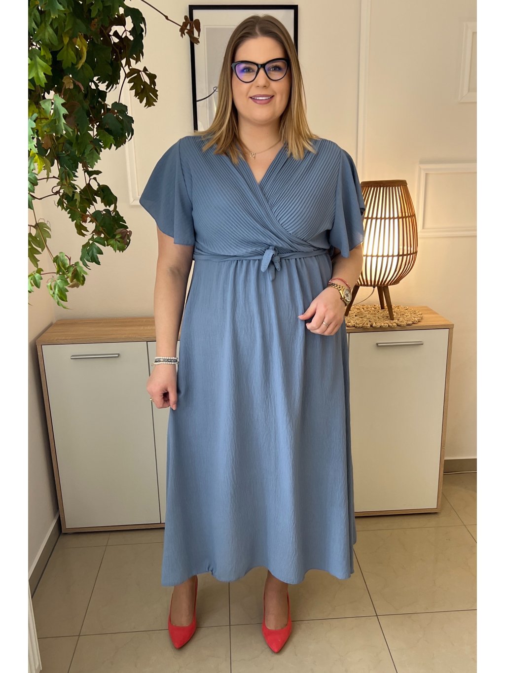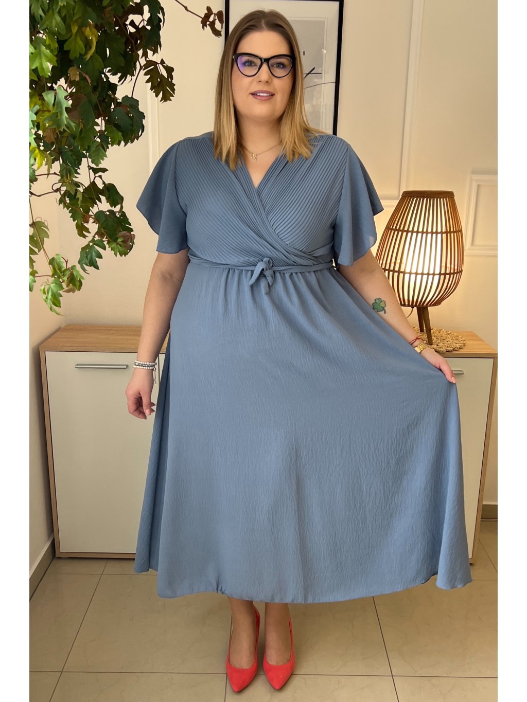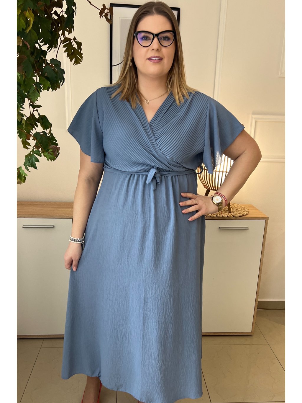 Plus size šaty ALEA sú jednoduché no zároveň jedinečné a mimoriadne pohodlné šaty. Ide o model so vzdušnou rozšírenou sukňou v midi dĺžke. Šaty majú prekladaný výstrih a krátke vzdušné volánikové rukávy. Plisovanie vo vrchnom diele šiat dodáva celku eleganciu a oživuje ho. Vďaka gumke v páse sa šaty prispôsobia postave, opasok model spestruje a pomáha zvýrazniť pás. Je to model, ktorý skvelo sadne na postavu, vďaka čomu sa každá žena bude cítiť žensky a štýlovo počas celého dňa.