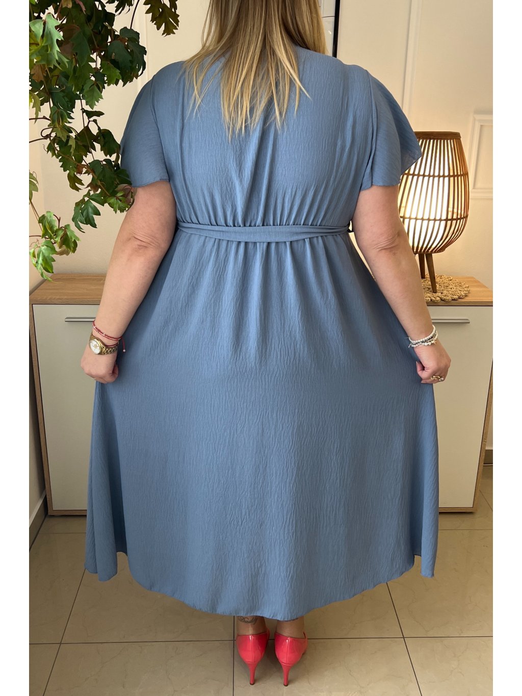 Midi šaty s rozšírenou sukňou s opaskom pre moletky Alea modré