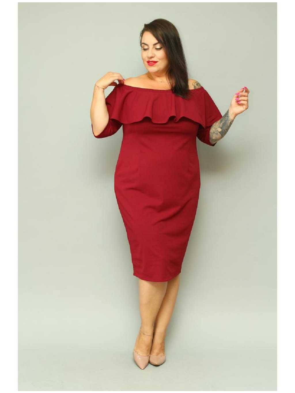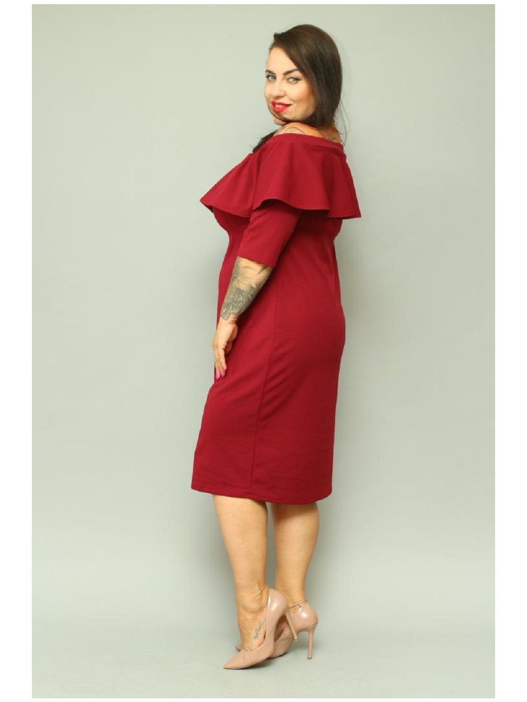 Ceruzkové šaty ELISE sú perfektnou voľbou, pre ženy, ktoré inklinujú k ceruzkovému strihu. Tento model sa vyznačuje úzkym strihom, španielskym výstrihom. Jeho veľkou prednosťou je aj mimoriadne efektný volán okolo výstrihu. Je nielen zaujímavou ozdobou na prednej a zadnej strane šiat, ale dodáva celku jedinečný vzhľad.