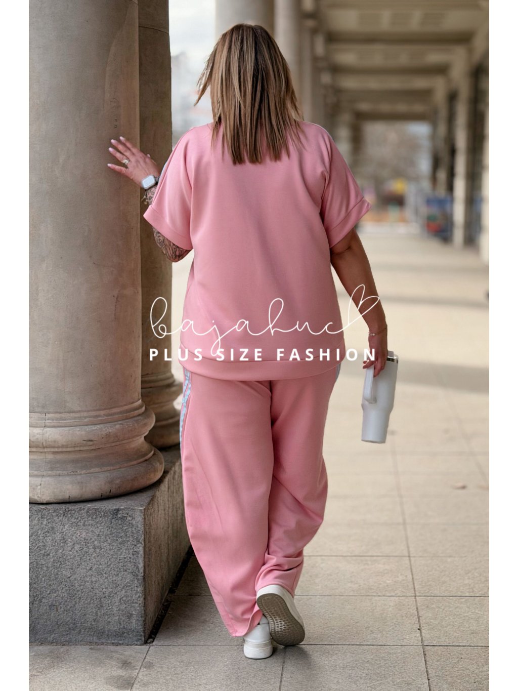 Pohodlný dámsky komplet trička a teplákov pre moletky Bianka ružový