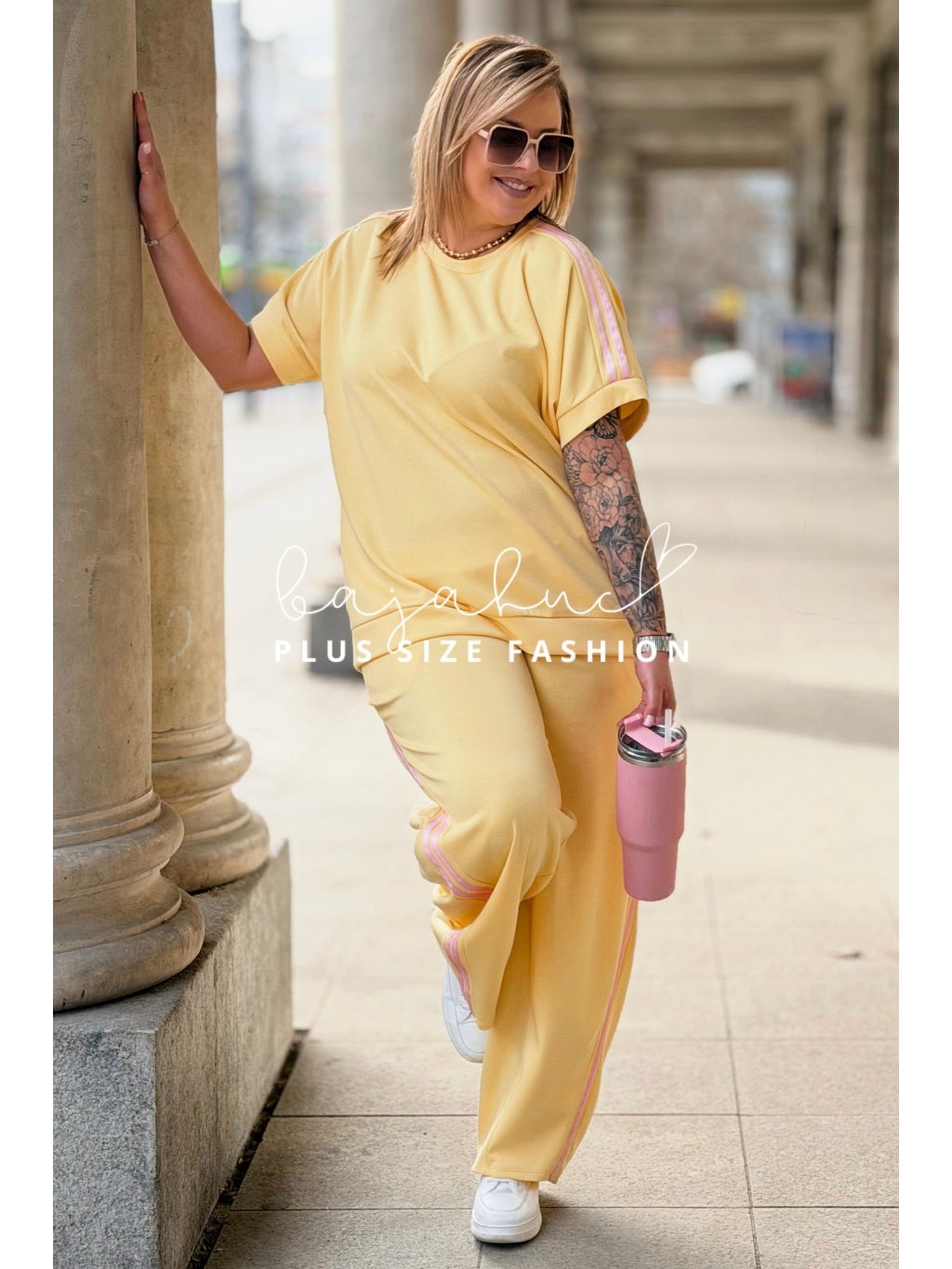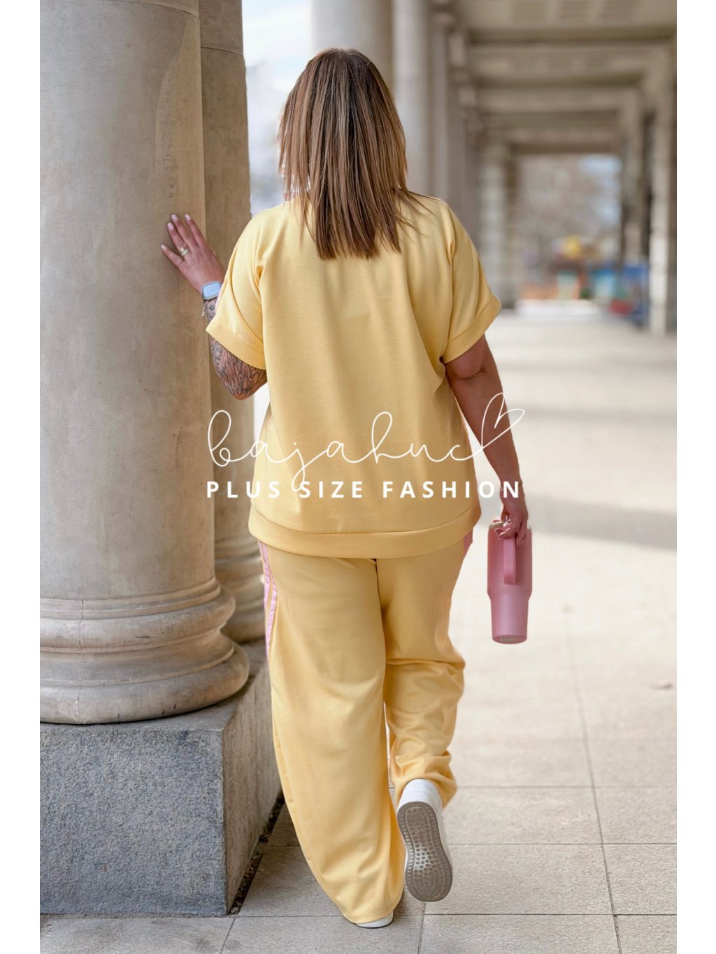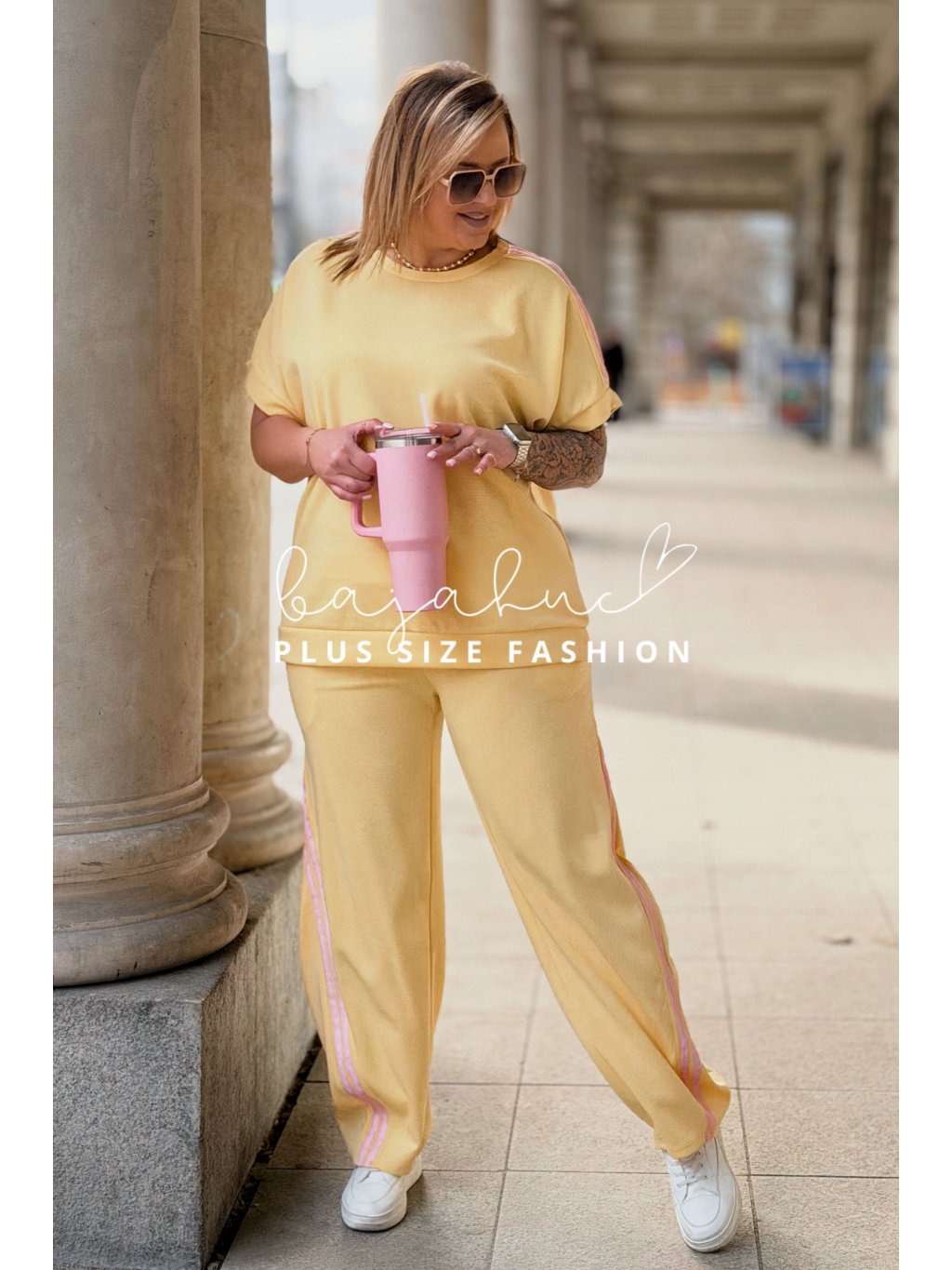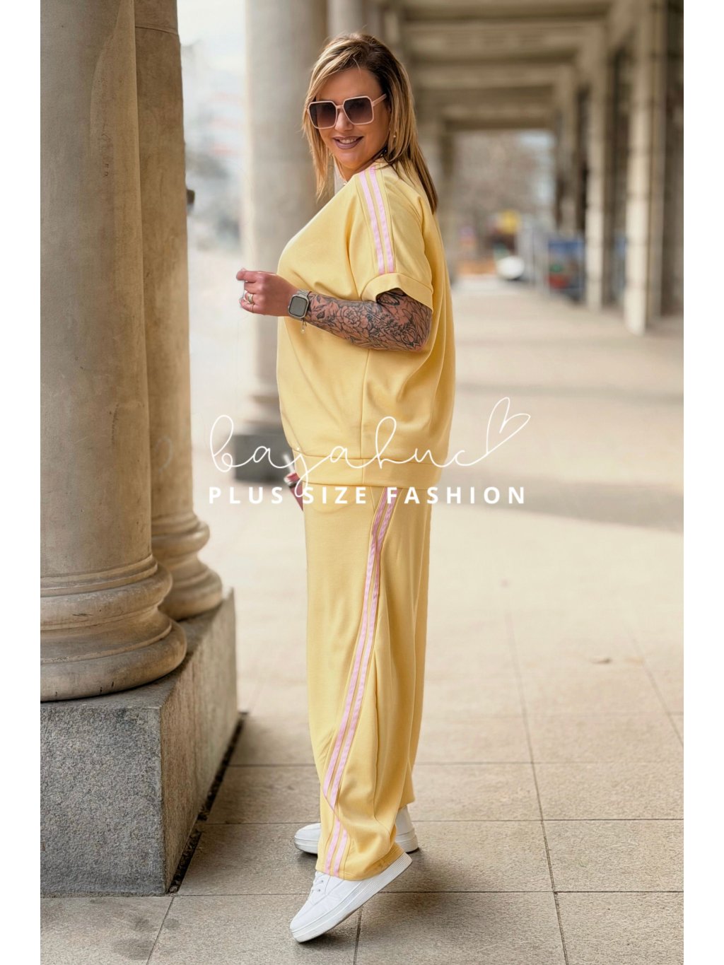 Pohodlný dámsky komplet trička a teplákov pre moletky Bianka žltý