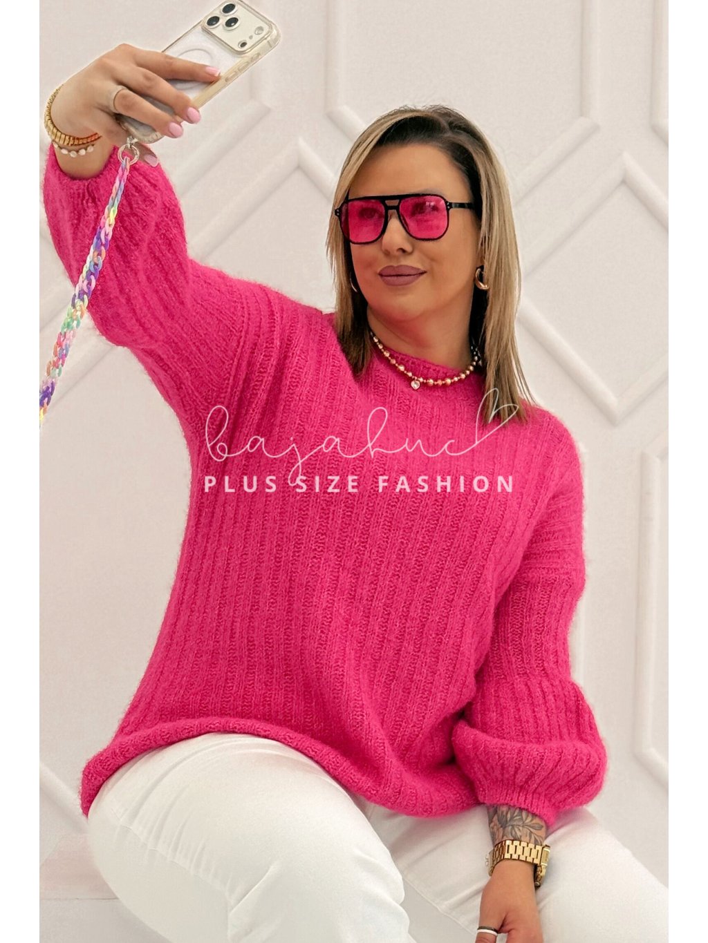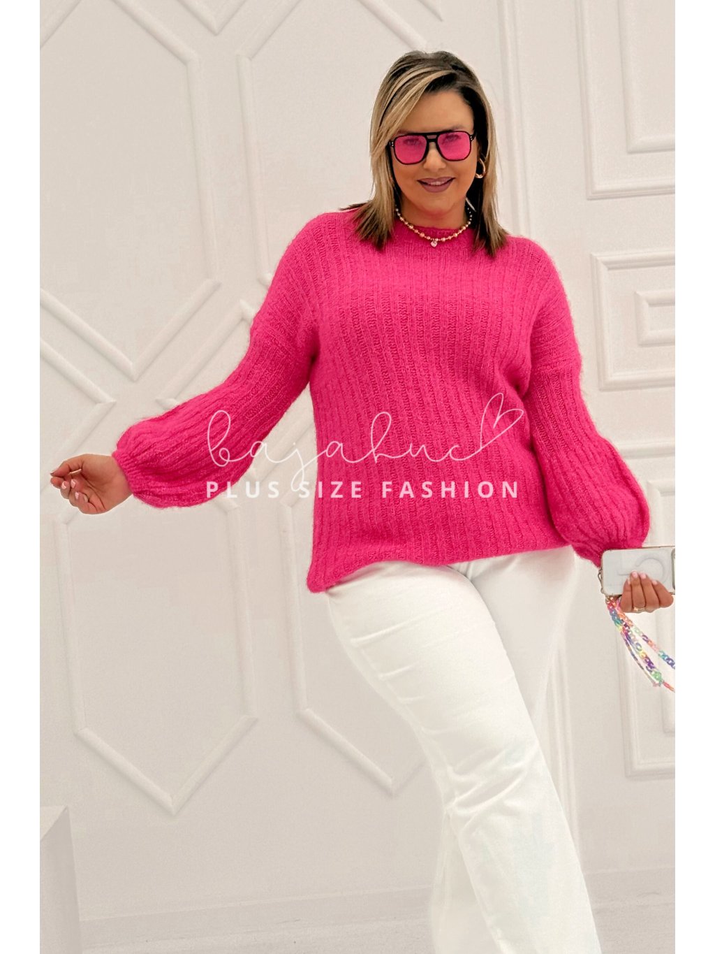 Pohodlný dámsky sveter s balónovými rukávmi pre moletky Elinet fuchsiový