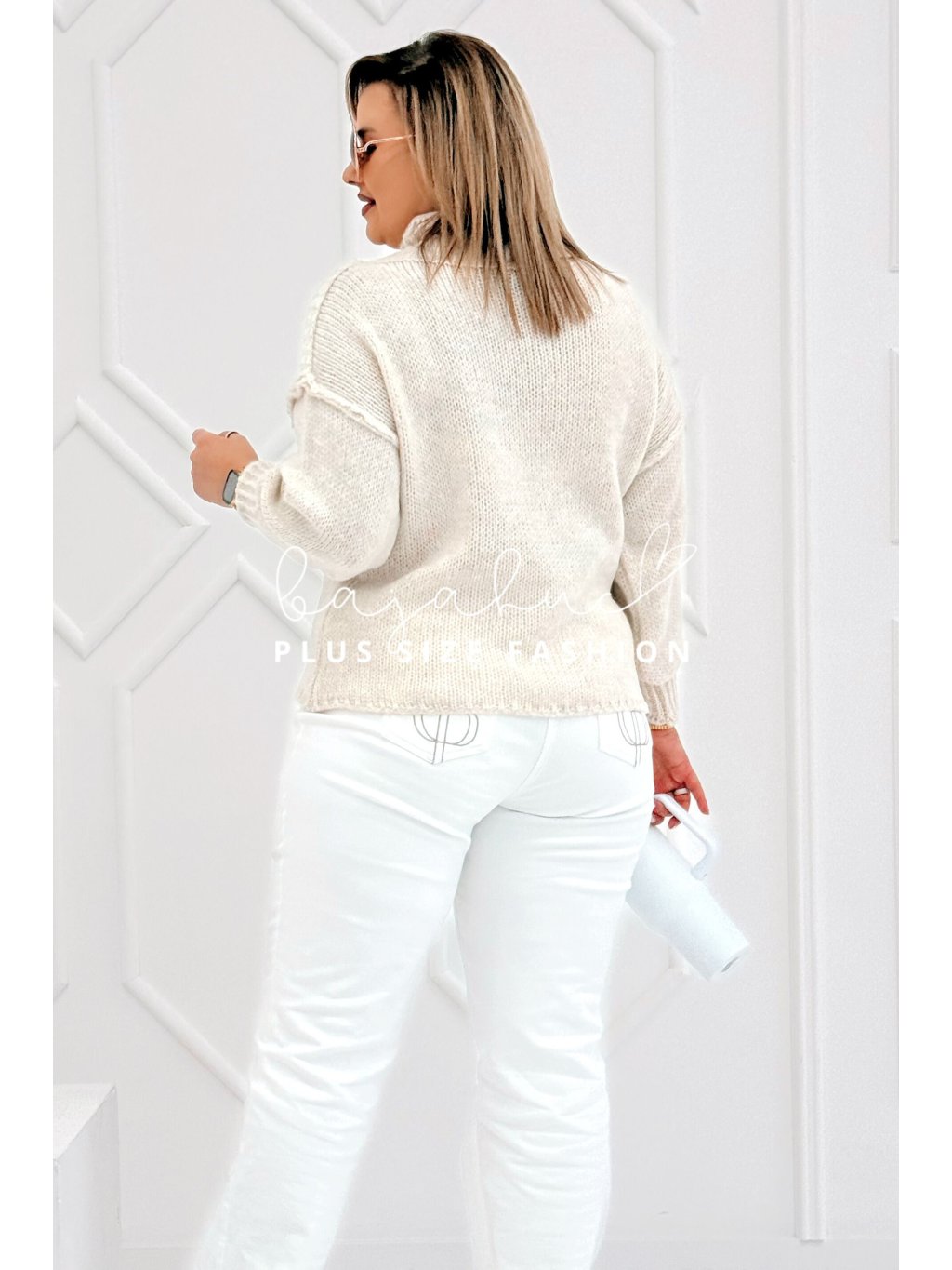 Plus size sveter ABIR je model, ktorý je ako stvorený do prechodného počasia. Ak hľadáte kúsok, v ktorom vyniknete, budete sa v ňom cítiť pohodlne, a ktorý skombinujete v bežný deň na nákupy či prechádzky a zároveň ho využijete do práce, alebo mesta s priateľmi, tak tento model sa stane hitom vášho šatníka.