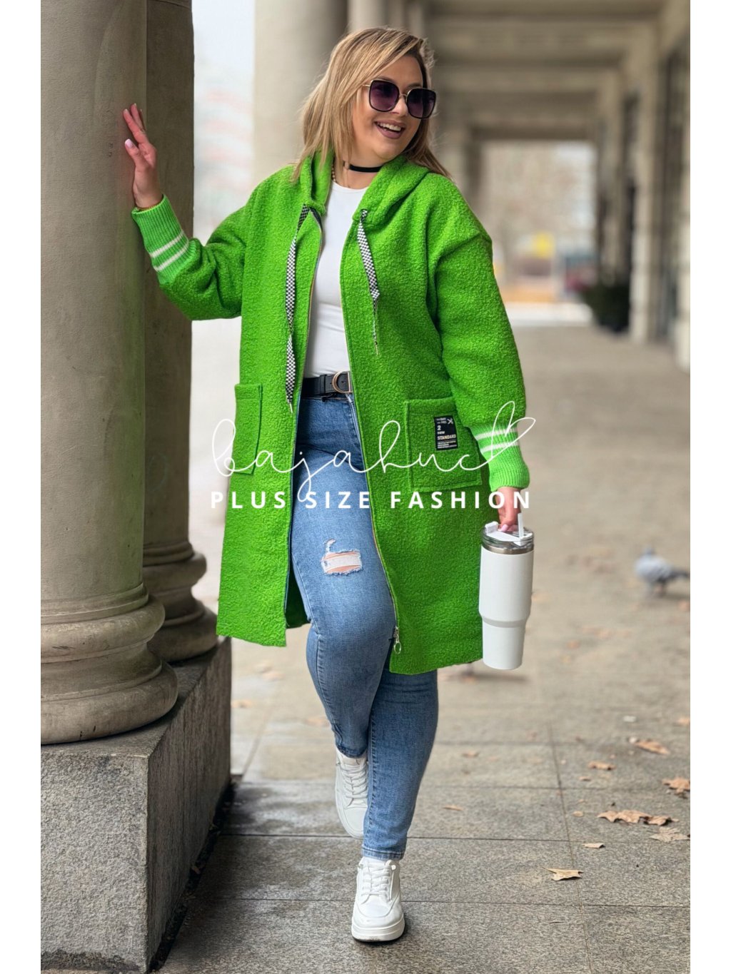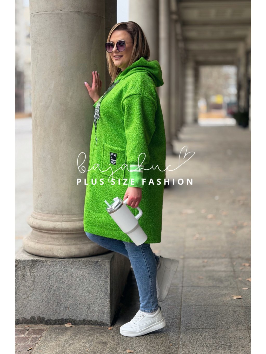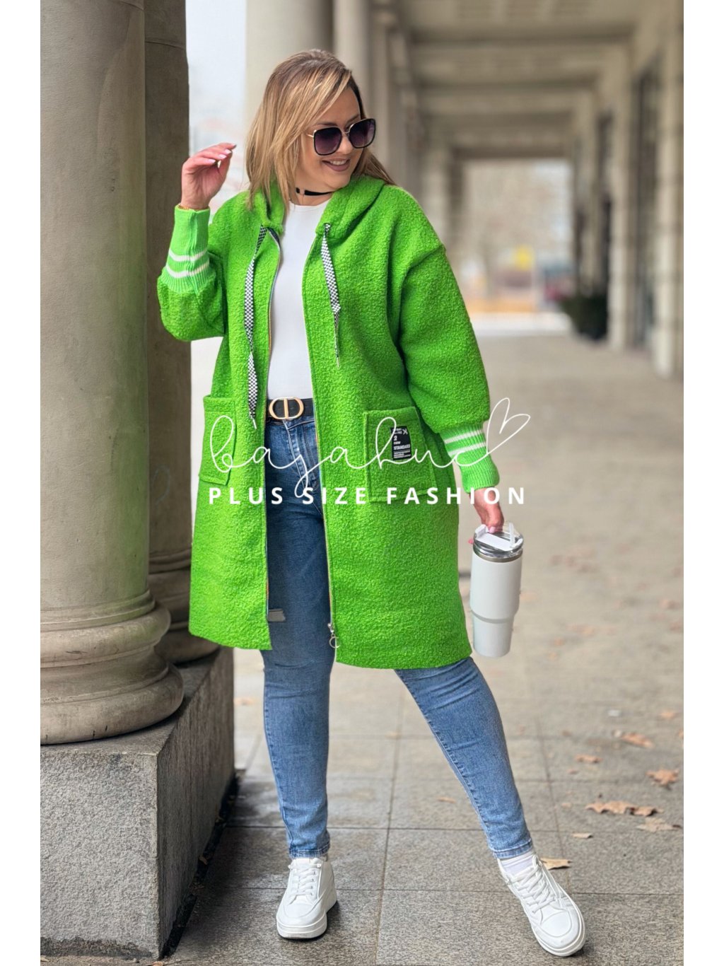 Pohodlná a štýlová mikina BETANA, ktorá vás zahreje počas prechodných jarných či jesenných dní. Mikina je predĺženého strihu, vyrobená z mäkkého boucle materiálu, ktorý je hebký na dotyk a zároveň moderný na pohľad. Plus size mikina BETANA má dlhé rukávy s patentom s pruhmi, výrazné šnúrky na kapucni a malú nášivku na vrecku ktoré model oživujú a robia ho jedinečným. Praktický zips a kapucňa z nej robia ideálny kúsok na každodenné nosenie - či už na prechádzku, do mesta, do práce alebo len na voľný čas doma.