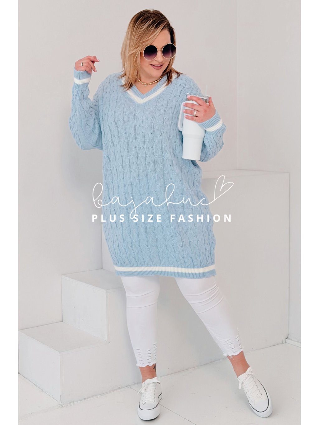 Plus size sveter LUVA je model, ktorý je ako stvorený do chladného počasia. Ak hľadáte kúsok, v ktorom vyniknete, budete sa v ňom cítiť pohodlne, a ktorý skombinujete v bežný deň na nákupy či prechádzky a zároveň ho využijete do práce, alebo mesta s priateľmi, tak tento model sa stane hitom vášho šatníka.