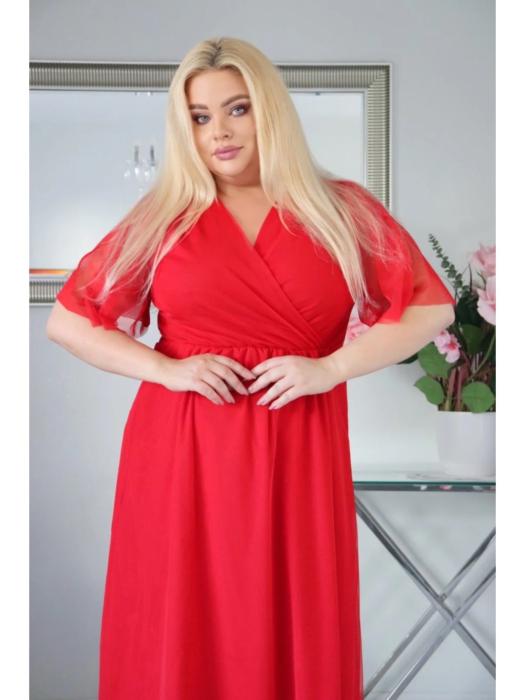 Plus size šaty LYDIA sú dokonalou voľbou, ak máte radi jednoduchosť a eleganciu. Tyl na sukni a rukávoch dodáva celku vzdušnosť a ľahkosť. V páse je jemná gumička, ktorá sa prispôsobí krivkám. Obálkový výstrih robí skvelý dojem a dokonale odhaľuje poprsie a krk. Zvýraznený pás pekne tvaruje, opticky predlžuje a zoštíhľuje postavu. V plus size šatách LYDIA budete neprehliadnuteľná na rôznych spoločenských udalostiach, svadbách, plesoch či večierkoch.