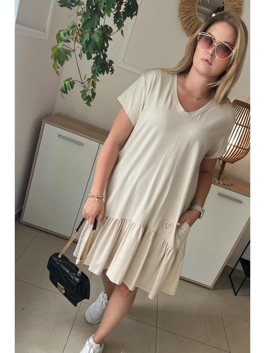 Letné bavlnené šaty s volánom pre moletky Bridget béžové