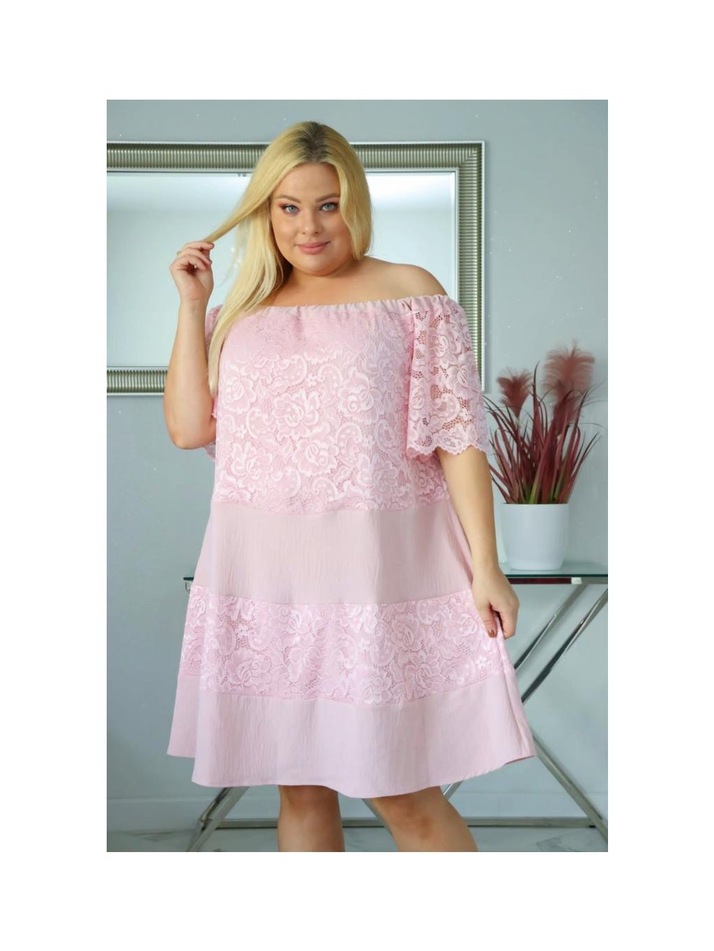 Krátke lichobežníkové šaty s čipkou pre moletky Bianca púdrovo ružové