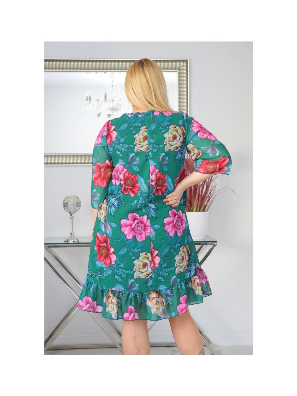 NA SKLADE Krátke vzdušné šaty s 3/4 rukávom pre moletky Lumina zelené s kvetmi