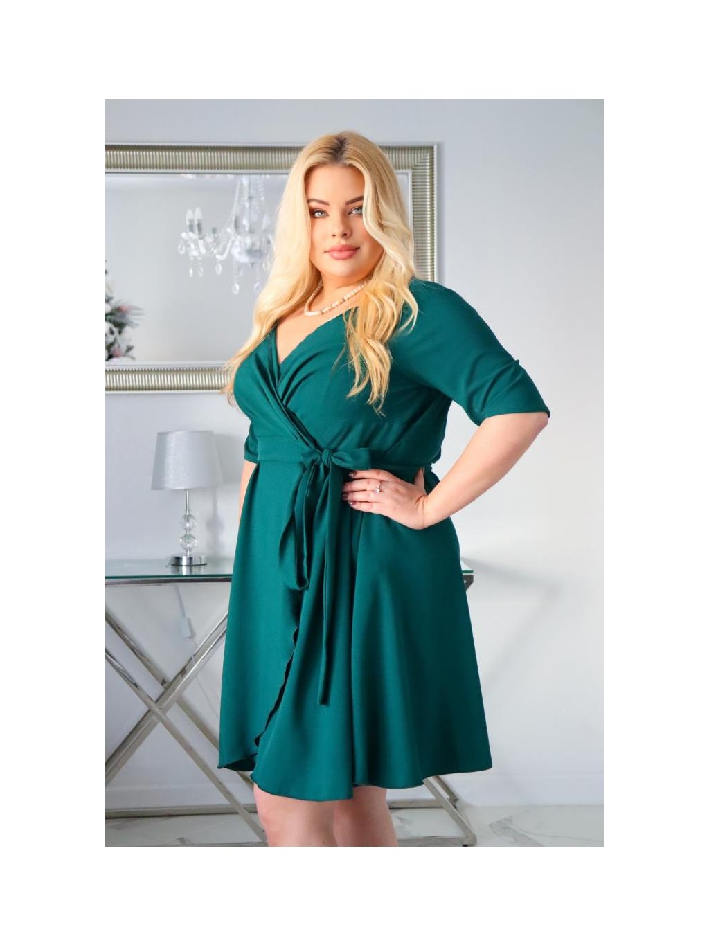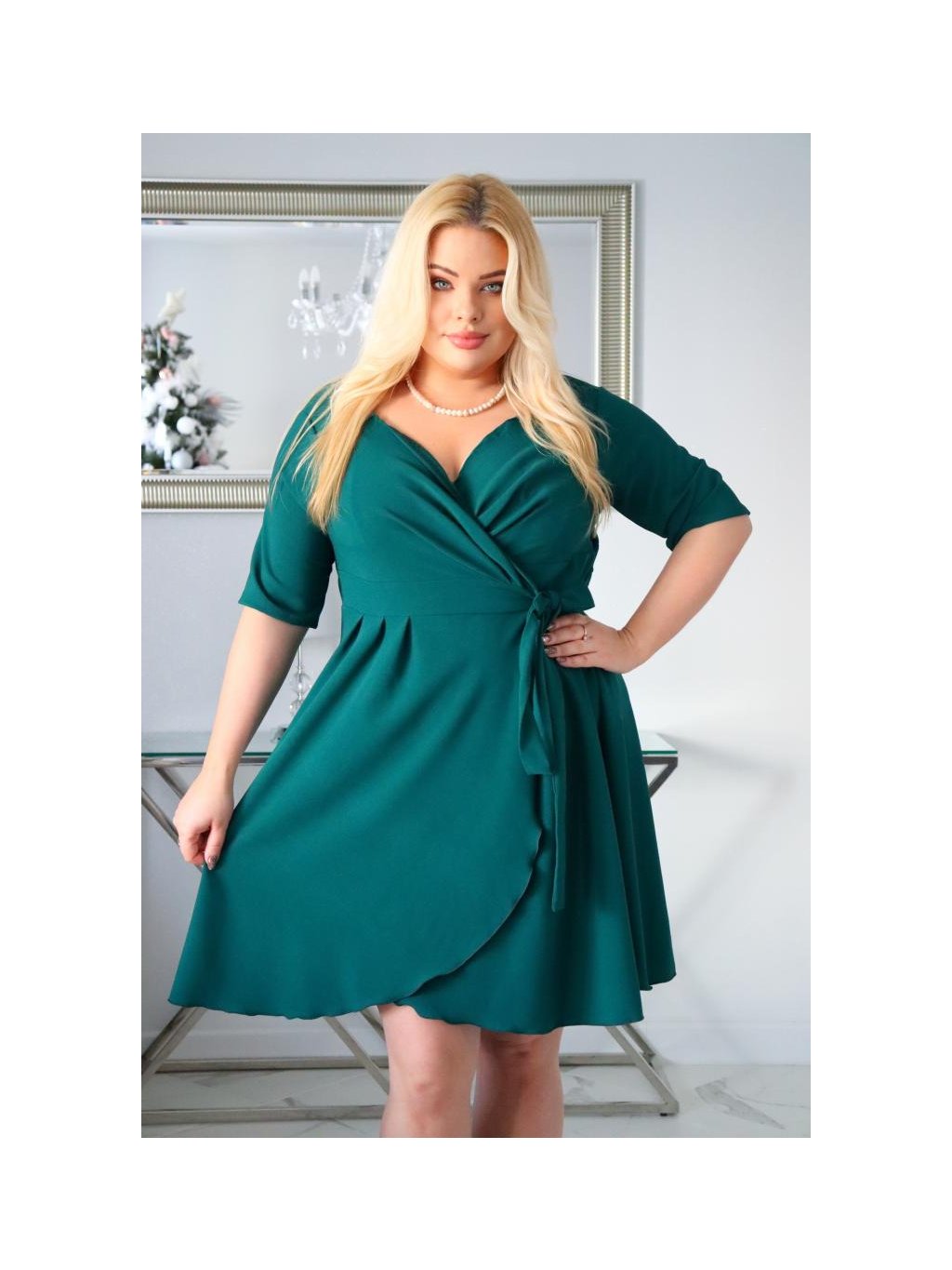 ZĽAVA Krátke zavinovacie plus size šaty Meggy tmavozelené