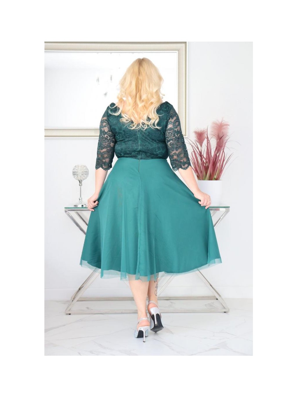NA SKLADE Midi spoločenské čipkované šaty s rozšírenou sukňou aj pre moletky Arieta zelené