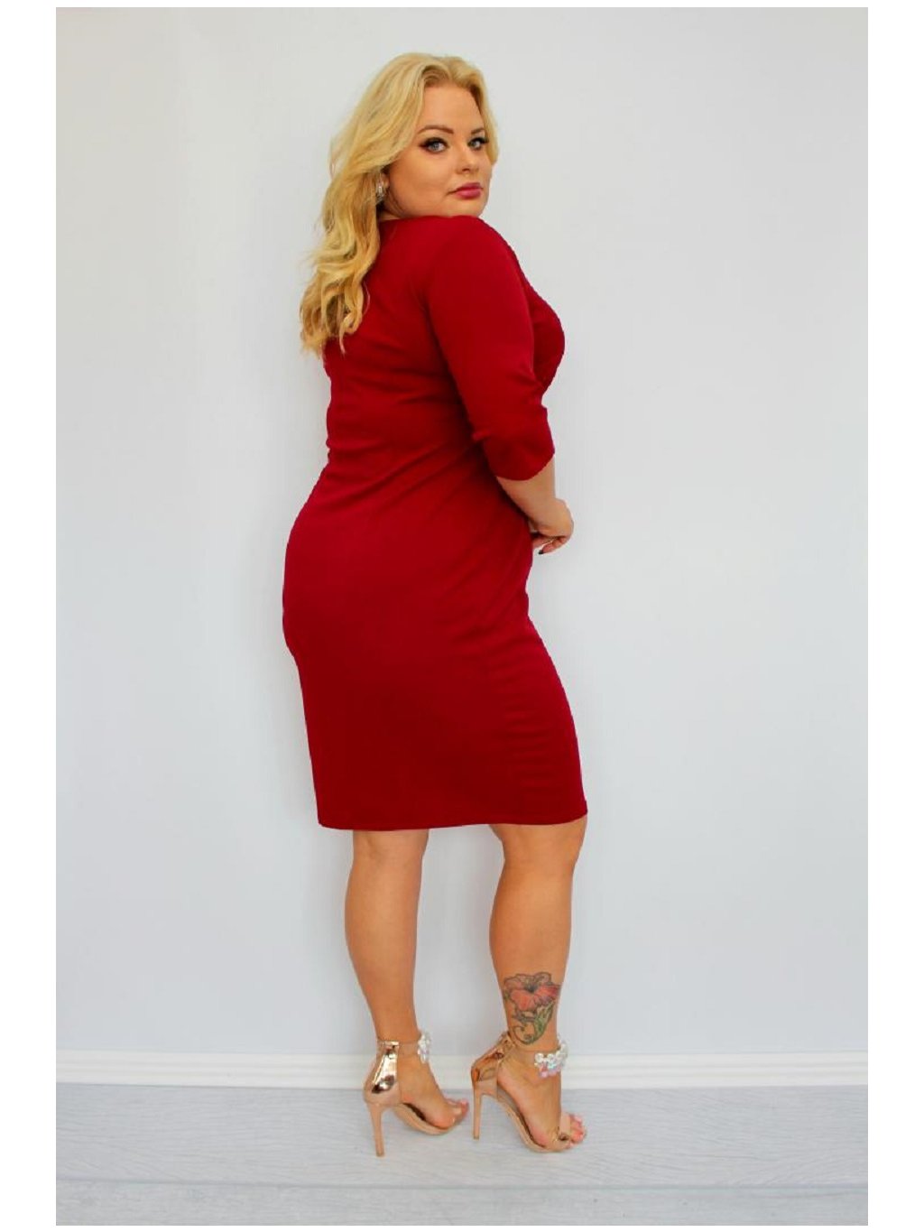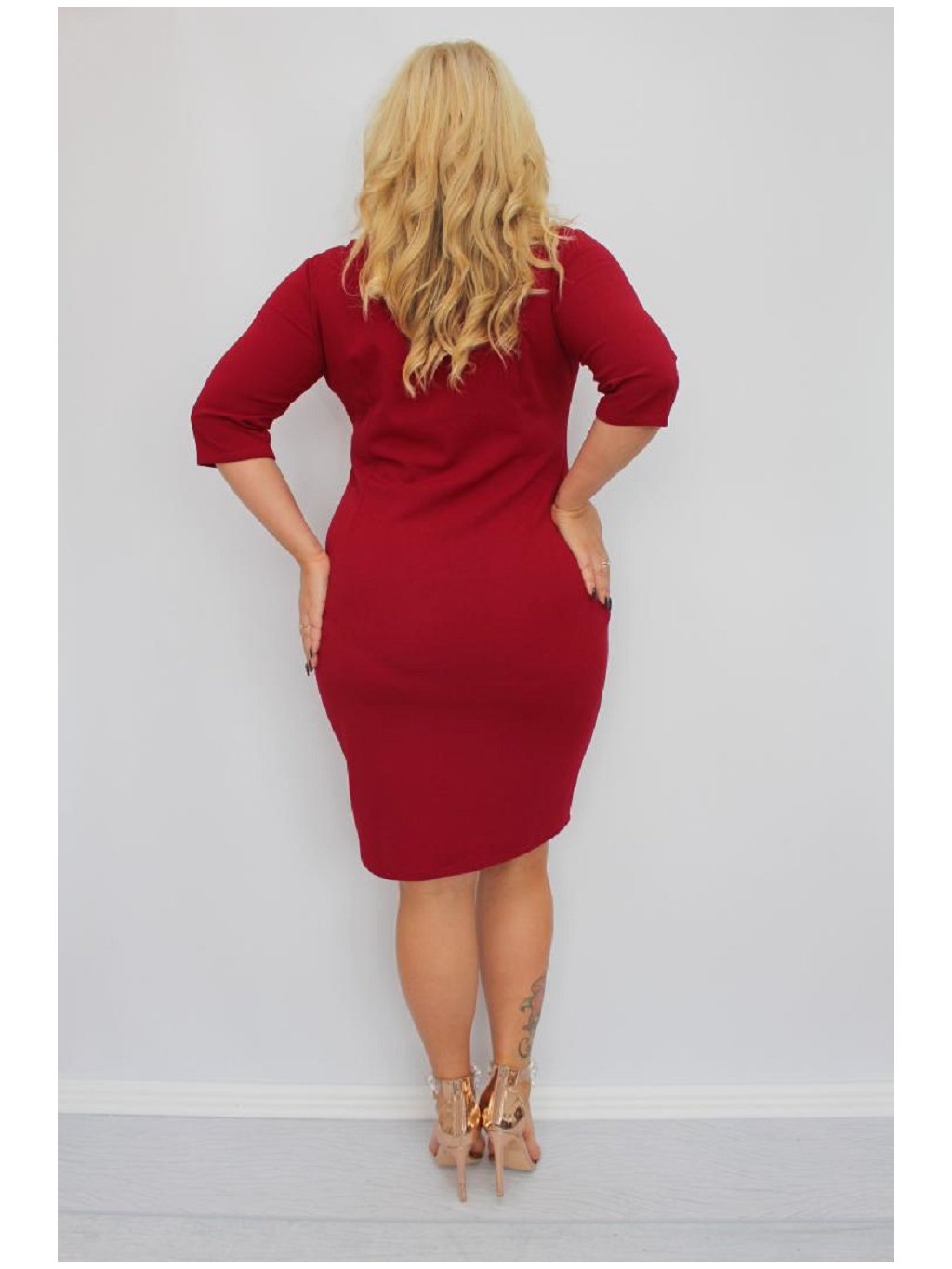 NA SKLADE Priliehavé spoločenské šaty so zipsovým výstrihom pre moletky Opal bordové