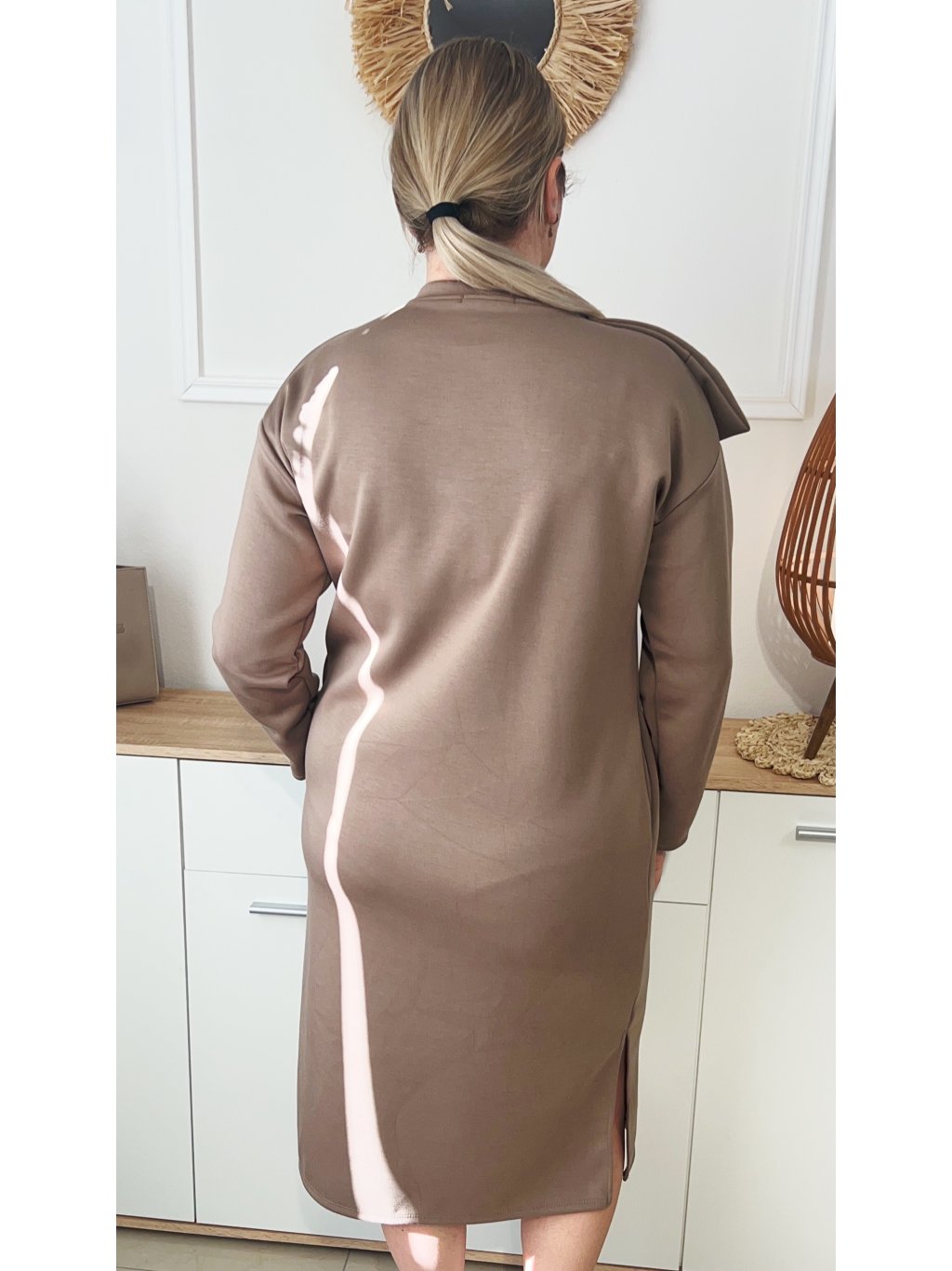 Pohodlné midi šaty s vreckami pre moletky Hande béžové s mašľou